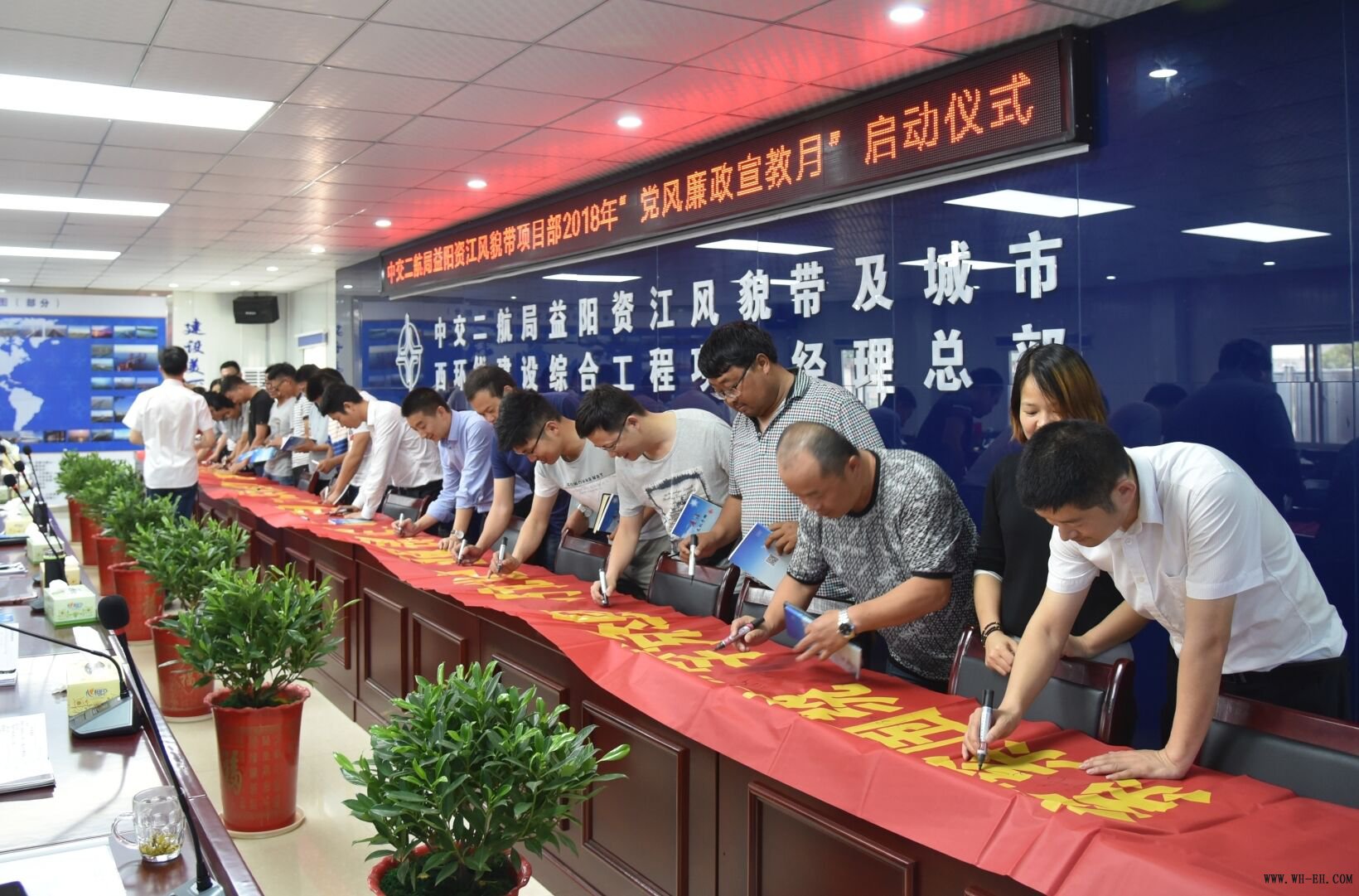 会上,项目党支部副书记刘小波宣贯了四公司关于开展2018年“党风廉政建设宣教月”活动的文件精神,宣布了活动的各项任务,带领党员同志和技术骨干共同学习了《廉洁文化手册》,并在廉政横幅上签名承诺。