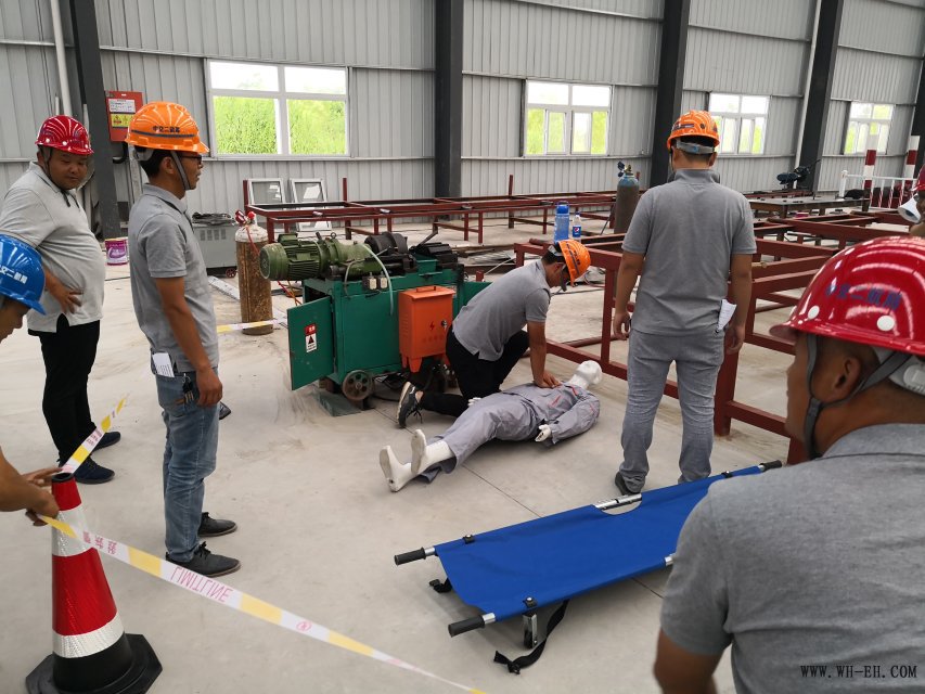 这是6月21日下午五峰山接线WFS-4标项目部在高资预制厂开展触电事故应急救援演练活动展现的一幕。本次演练模拟了一位电焊工因违章作业导致触电的应急救援一系列过程。经过前期的周密策划,本次演练过程顺畅,参演人员各自熟悉并掌握应急救援流程,尤其是在进行CPR(心肺复苏)的时候,参演人员表现得很专业,这得益于在演练前,项目部邀请了“绿色通道”合作单位镇江市第一人民医院急救中心的两位主任医生从临床角度,结合实际案例,给全体人员讲授了应急救援常用知识并现场演示。