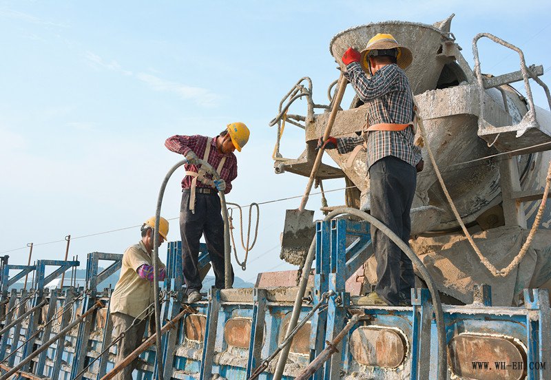 7月9日下午,工人们用抹子将最后一块护栏顶面混凝土磨光、压实,池州大桥北引桥防撞护栏施工随之落下帷幕。