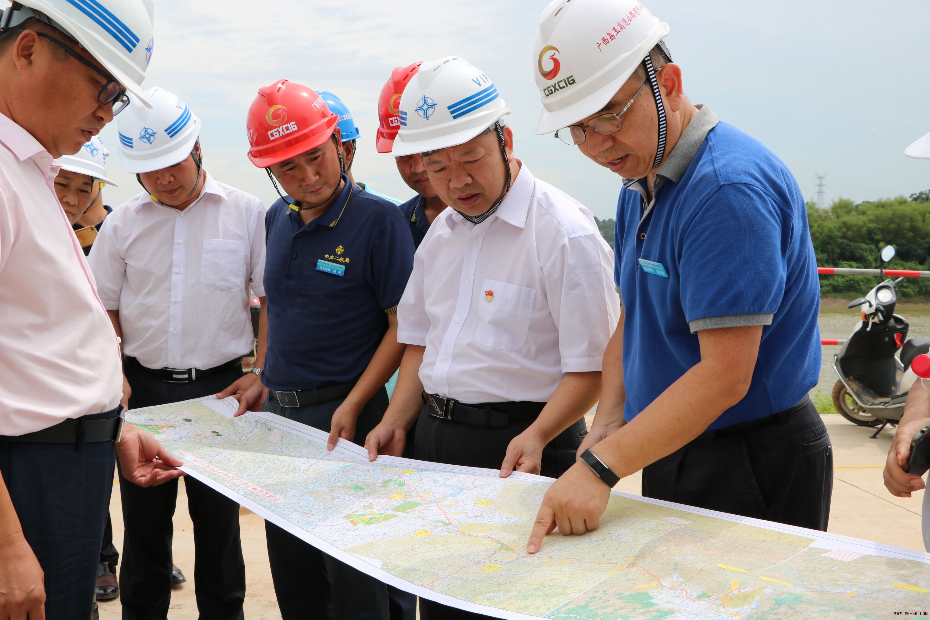在大桥施工现场,姚丙良详细介绍了荔浦至玉林高速公路征地拆迁进展情况,项目负责人杨琳就目前主体工程施工进展情况及征地拆迁完成情况向黄星荣做了报告。