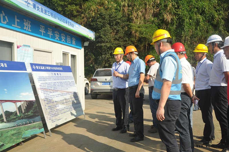 9月26日,福建省高速公路建设指挥部副总指挥、省高速公路公司总经理陈岳峰、省高速公路公司工程处处长陈礼彪一行深入莆炎高速三明段YA20施工项目部现场,调研项目工程建设及工地党建开展落实情况。