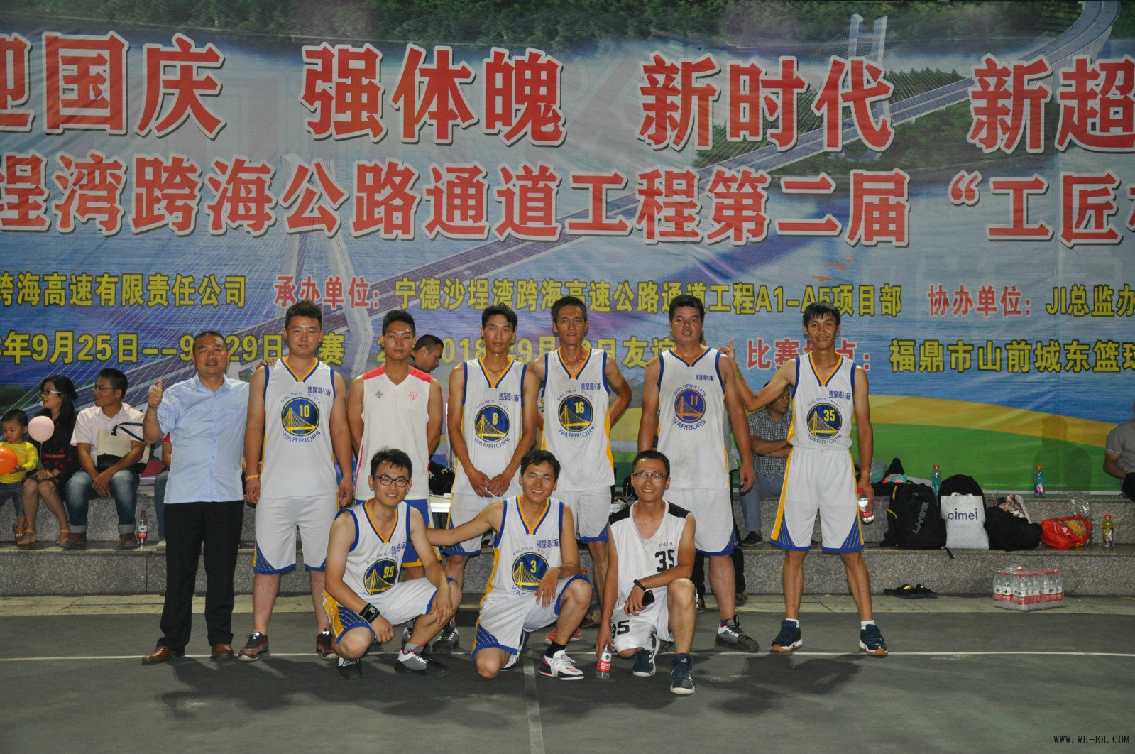 9月30日,经过六天的精彩角逐,福建省沙埕湾跨海公路通道工程以“迎国庆、强体魄,新时代、新超越”为主题的第二届“工匠杯”篮球赛,在福鼎市山前城东篮球场圆满落幕。A3标代表队获得第三名,同时也是所有参建标段(A1-A5标段)的第一名。
