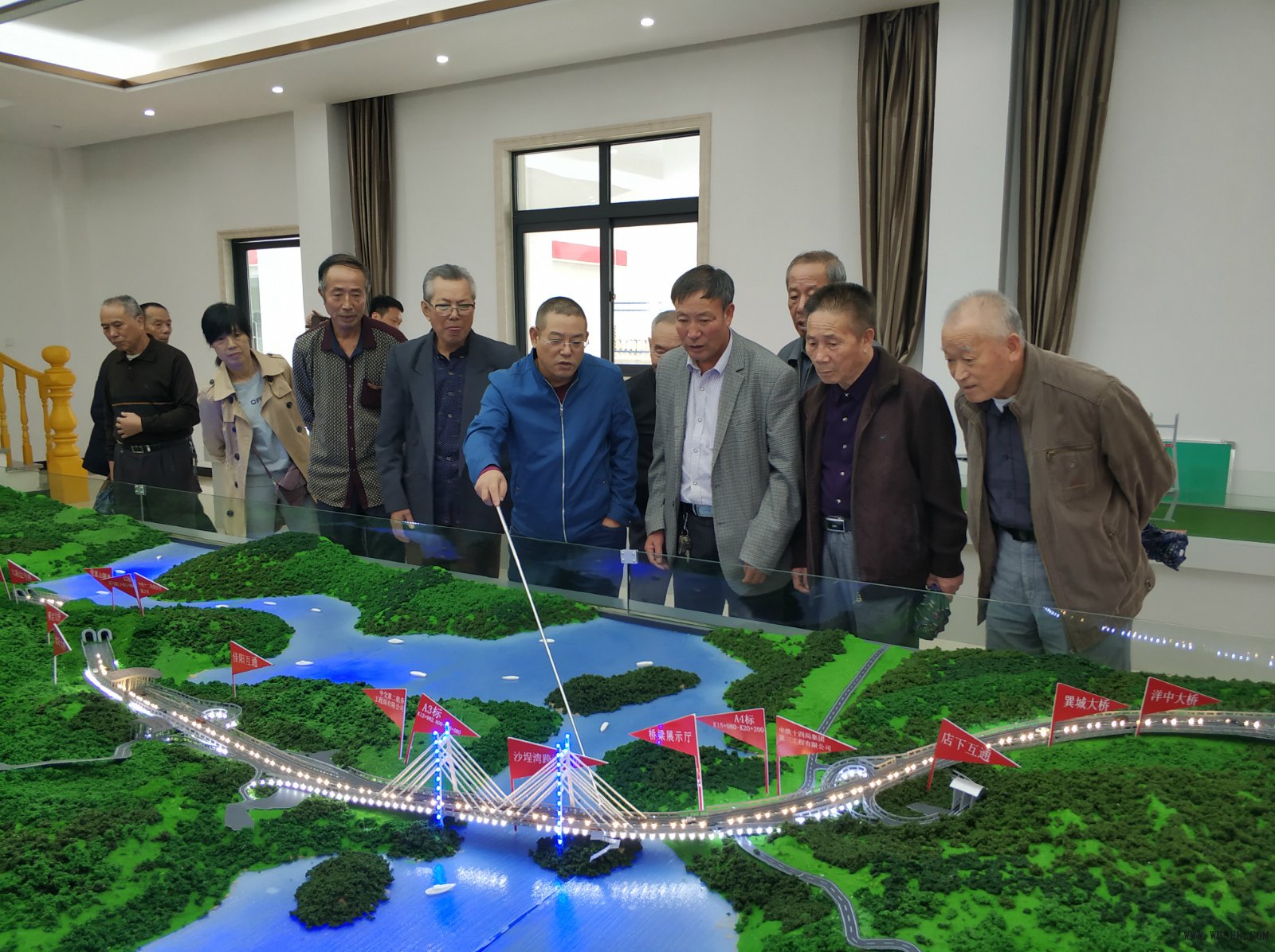 项目书记首先对老领导们的到来表示荣幸。在桥梁展示厅的桥梁模型沙盘前,他详细介绍了工程概况,并就现场施工管理、大桥建设特色等方面一一进行解说。当退休老干部们了解到项目各项工作进展顺利,项目建设得越来越好的时候,纷纷露出欣慰的笑容。