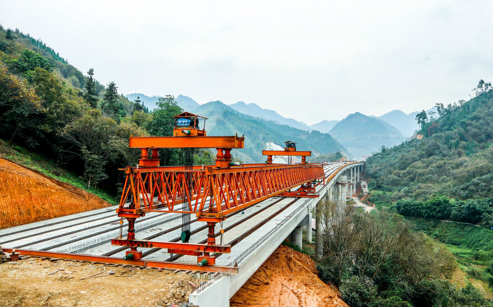 周福2号大桥设计采用门式墩形式跨越国道,在确保安全施工的同时又要保证交通,是本桥施工的重难点之一。项目部多方论证,精诚合作,完成了架梁任务。这是项目开工至今第一次真正意义上的“收获”,这给予了驻守在偏远山区艰苦奋斗的乐百4标建设者们以极大的信心。