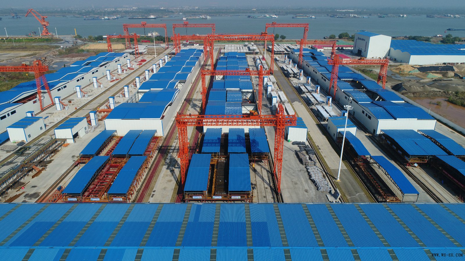 五峰山过江通道公路接线工程是江苏省第一批公路水运品质示范项目,也是唯一入选交通运输部品质工程攻关行动试点项目的项目,由公司承建的WFS-4标节段梁预制品质攻关行动是整个项目品质攻关核心内容。为此,公司在镇江高资镇投资约1.3亿,建设了占地约200亩的现代化节段梁预制。