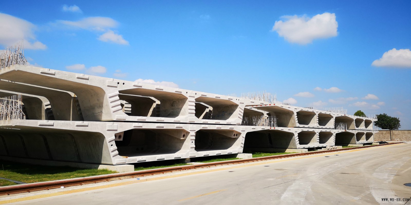 预制厂功能分区明确,主要分为生产区和办公生活区,其中生产区包括:钢筋配送中心、混凝土拌合区、钢筋绑扎区、预制区、养护区等,形成工厂化流水生产线。预制厂主要承担五峰山过江通道公路接线工程WFS-4标的3095榀节段梁的预制任务,其中2米高梁段1670榀,3米高梁段1425榀,梁段类型达30种。预制梁段均为单箱双室梁,顶宽达19.75米,预制重量最大达160吨,预制难度大。