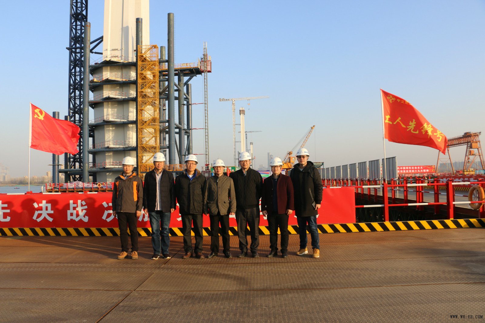 陈向东一行先后参观了北塔、中塔以及北接线节段梁安装施工现场,并就南京五桥的管理模式、技术创新、科研成果、实施过程中遇到的问题以及解决情况等与项目部人员进行了交流。
