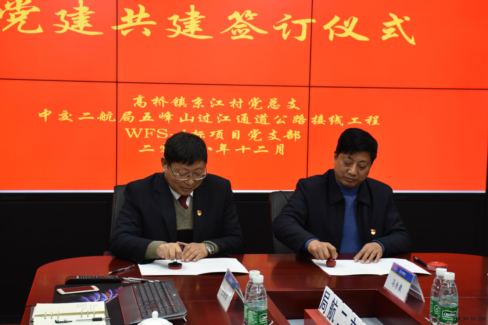 12月20日下午,中交二航局五峰山接线WFS-4标项目党支部与高桥镇京江村党总支联合开展党建共建活动,在高资预制厂举行了党建共建签约仪式,五峰山接线建设指挥部、高桥镇等单位代表及五峰山接线WFS-4标党支部、京江村党总支党员代表合计20余人参加了签约仪式。