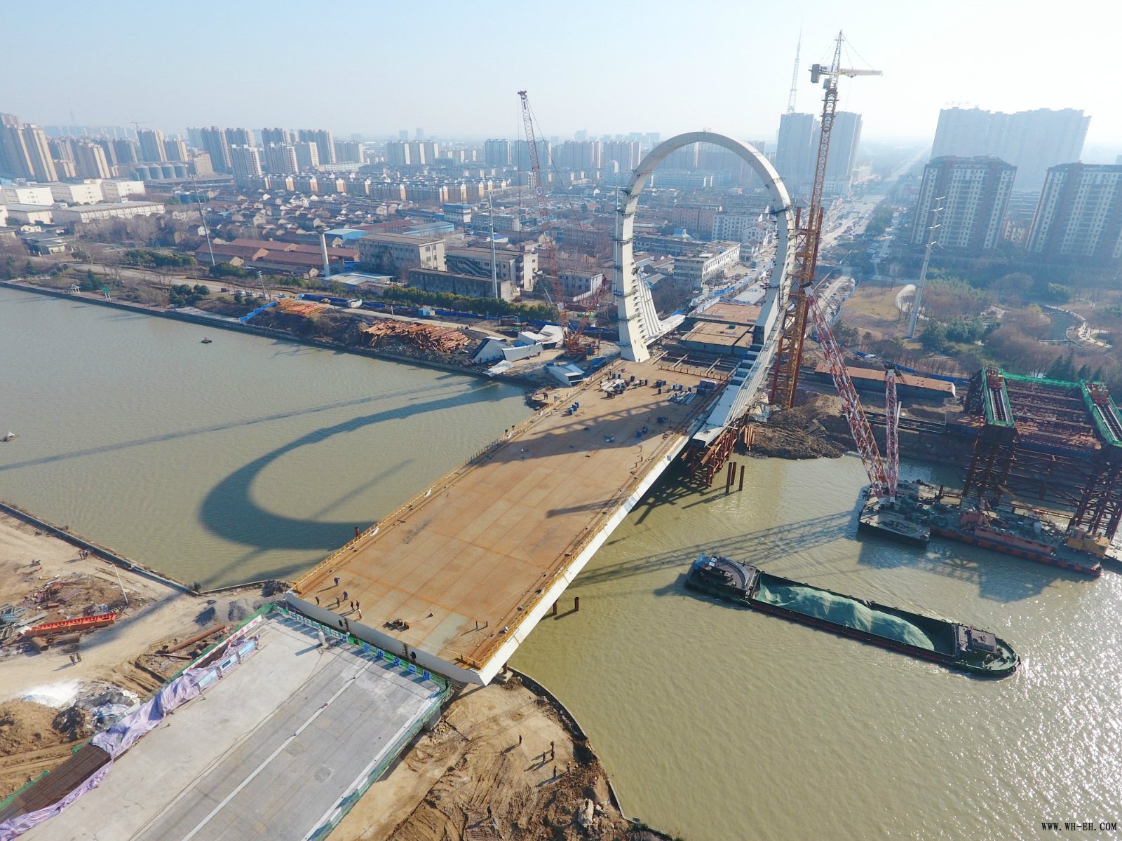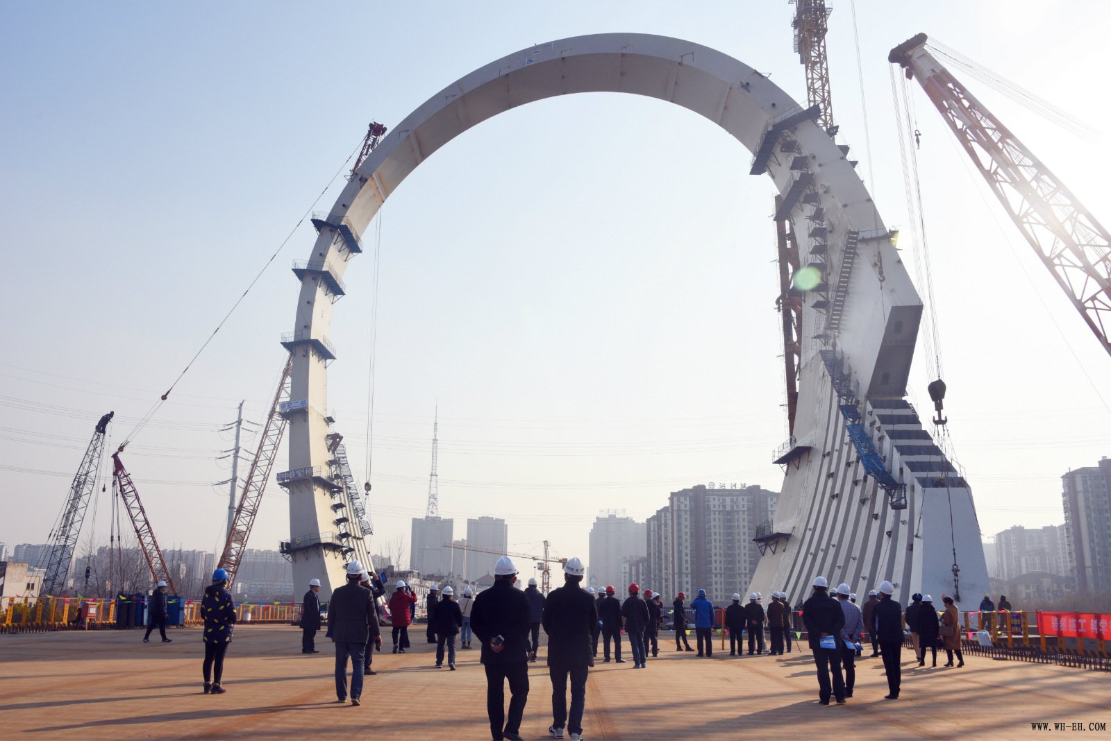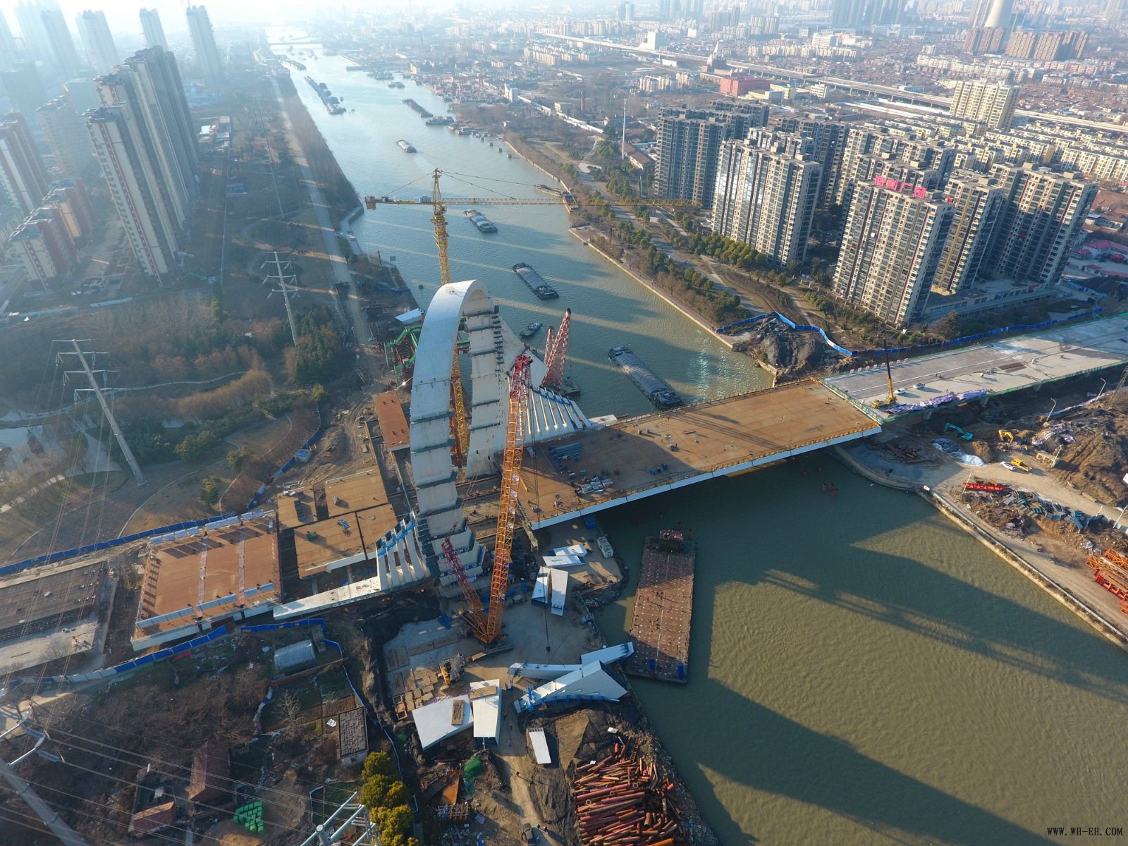 2019年1月23日,公司承建的超高、超宽、超重空间异型拱形塔梁固结体系桥梁——京杭运河淮海路大桥顶推过河施工圆满完成。