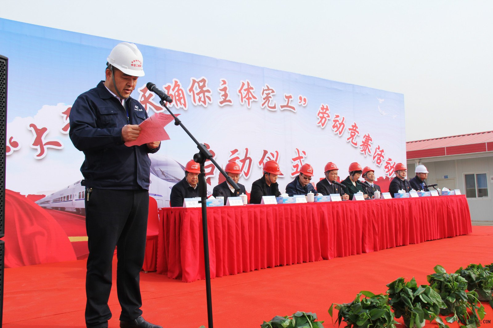 田会兰代表廊坊市总工会对京雄项目的全体参建者表示慰问和感谢,同时,也希望各方单位按照要求,坚持科学发展观,以工程劳动竞赛活动为载体,进一步调动和激发广大员工旺盛的劳动热情和聪明才智,在确保竣工目标的实践中展示新风采、创造新业绩、作出新贡献!