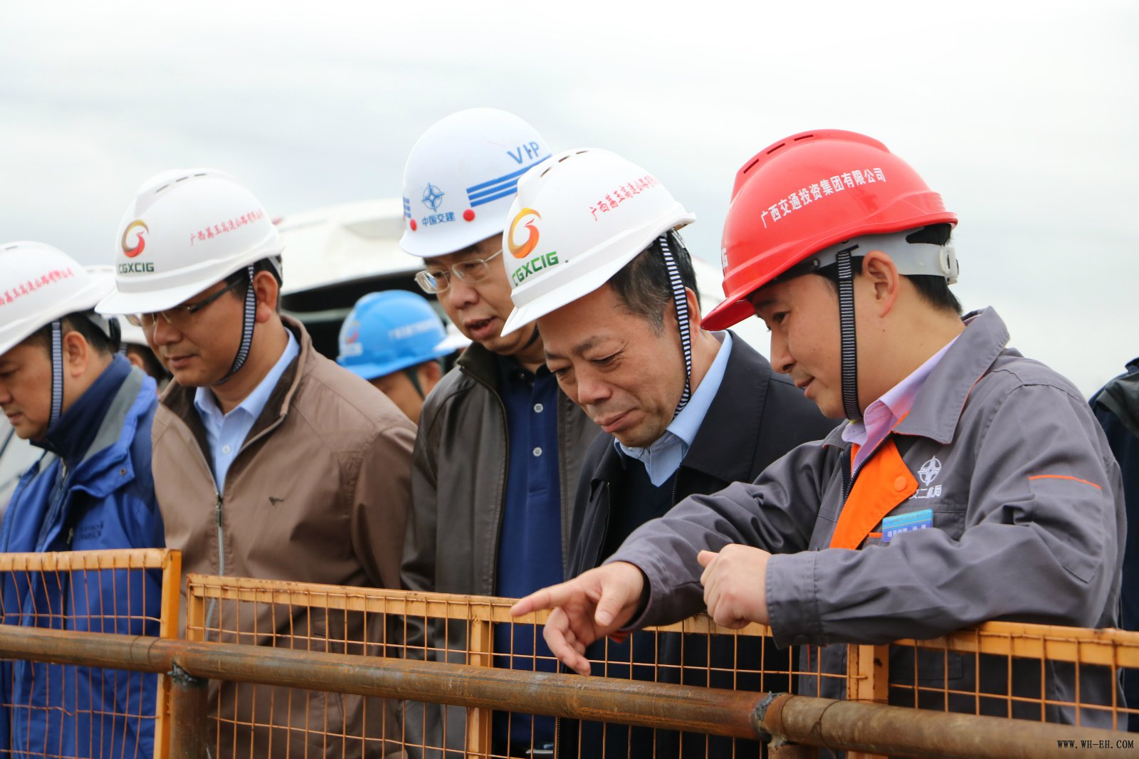 3月6日,广西交通投资集团党委书记、董事长周文一行到荔玉高速11分部调研,平南县副县长莫涛,荔玉路指挥部指挥长张荫成,荔玉项目总承包部总经理刘德新等陪同检查。