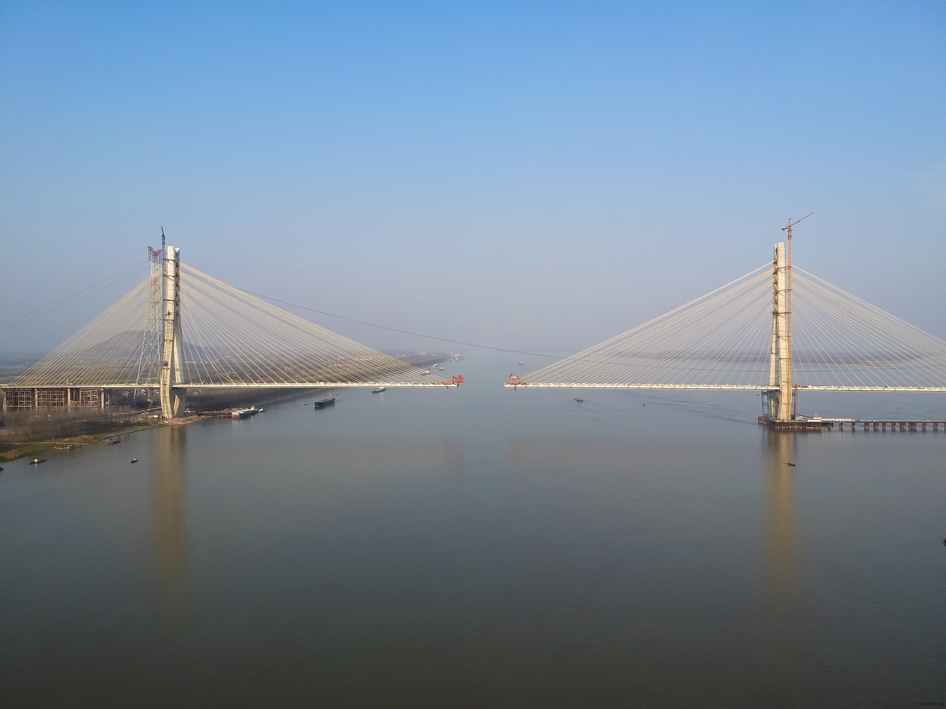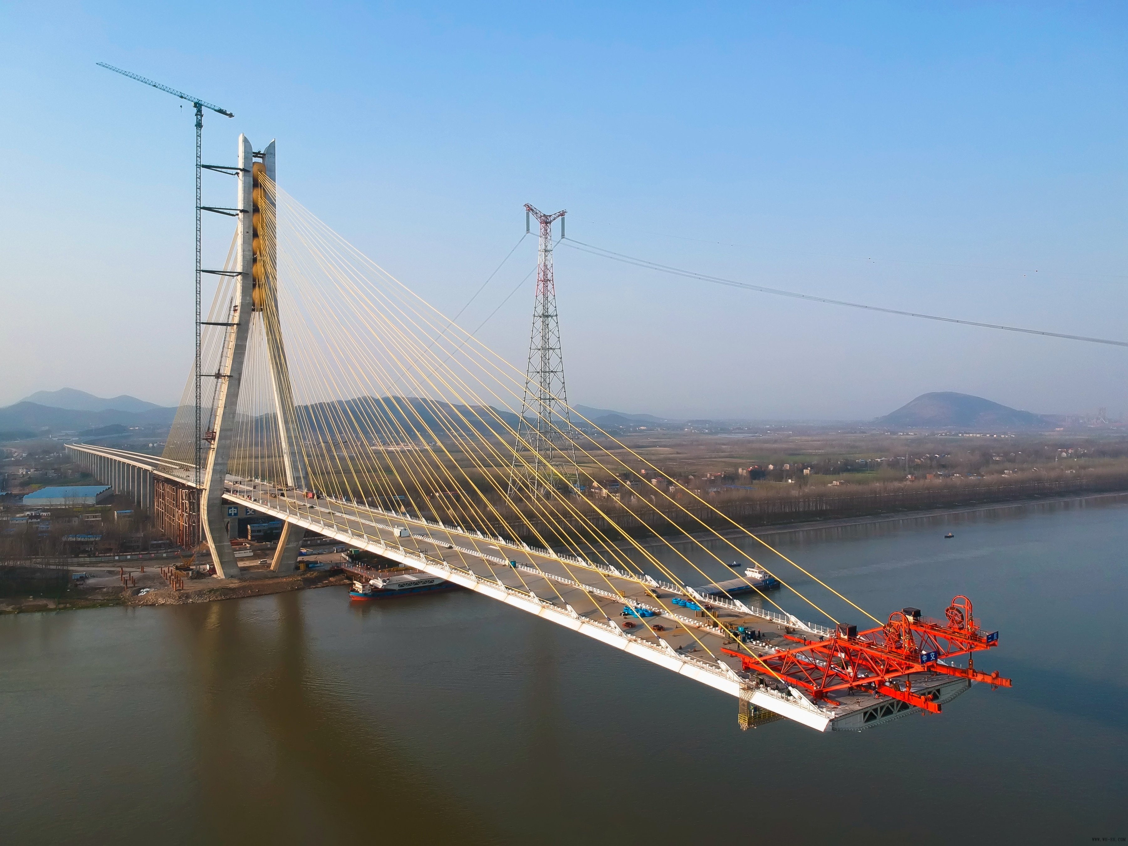 3 月13日,在池州长江大桥北主桥钢箱梁吊装施工现场,中交二航局正在进行北侧最后一榀钢箱梁的吊装作业。吊装完成后,大桥将只剩南侧合龙段。大桥全部钢箱梁将于3月底完成吊装作业,实现合龙,预计6月建成通车。