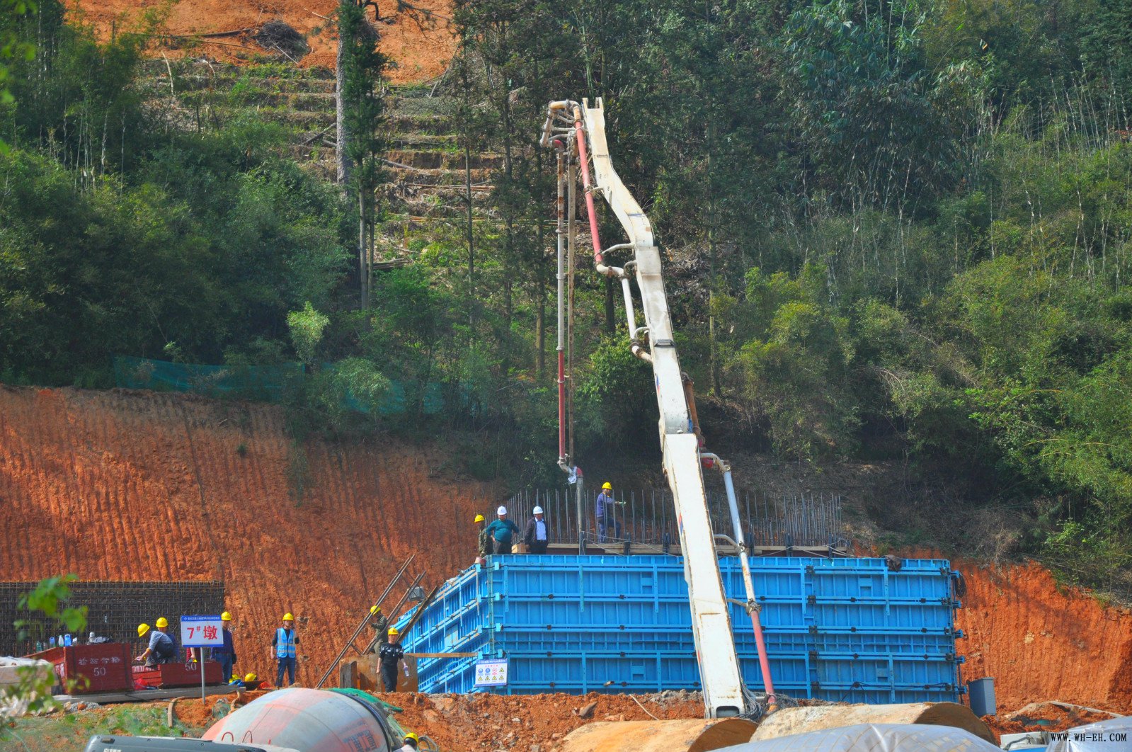 3月13日下午,伴随着混凝土泵车运转的轰鸣声,沙溪大桥首个承台开始浇筑,这标志着沙溪大桥从基础施工进入上部结构施工阶段。