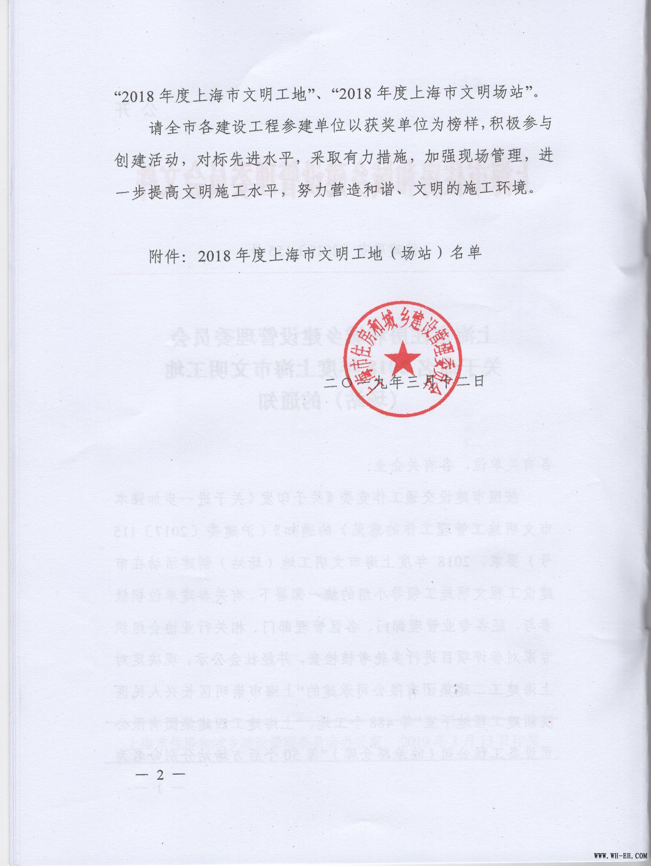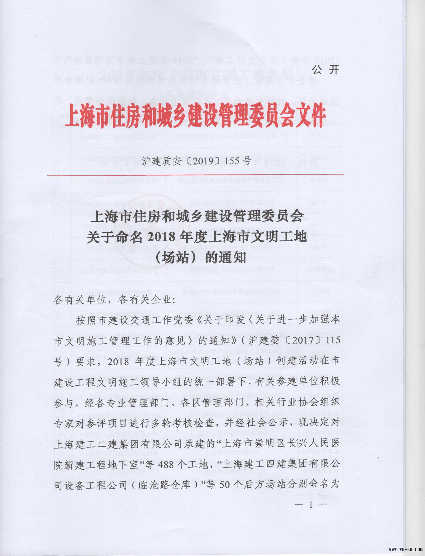 春暖花开的3月,上海市住房和城乡建设管理委员会发布了2018年度上海市文明工地的名单,公司承建的上海S26公路入城段(G15-嘉闵高架路)新建工程S26R-7标项目名列其中,喜获上海市文明工地称号。