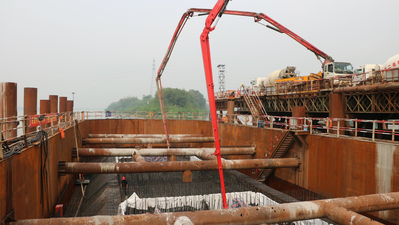 从2月26日承台封底开始,相思洲大桥全体作业人员不懈努力,仅用43天时间,先后完成水下大体积封底混凝土浇筑、400余吨钢护筒的割除、23个直径2.5米桩头破除、800余吨钢筋的绑扎和5030方承台混凝土的浇筑。