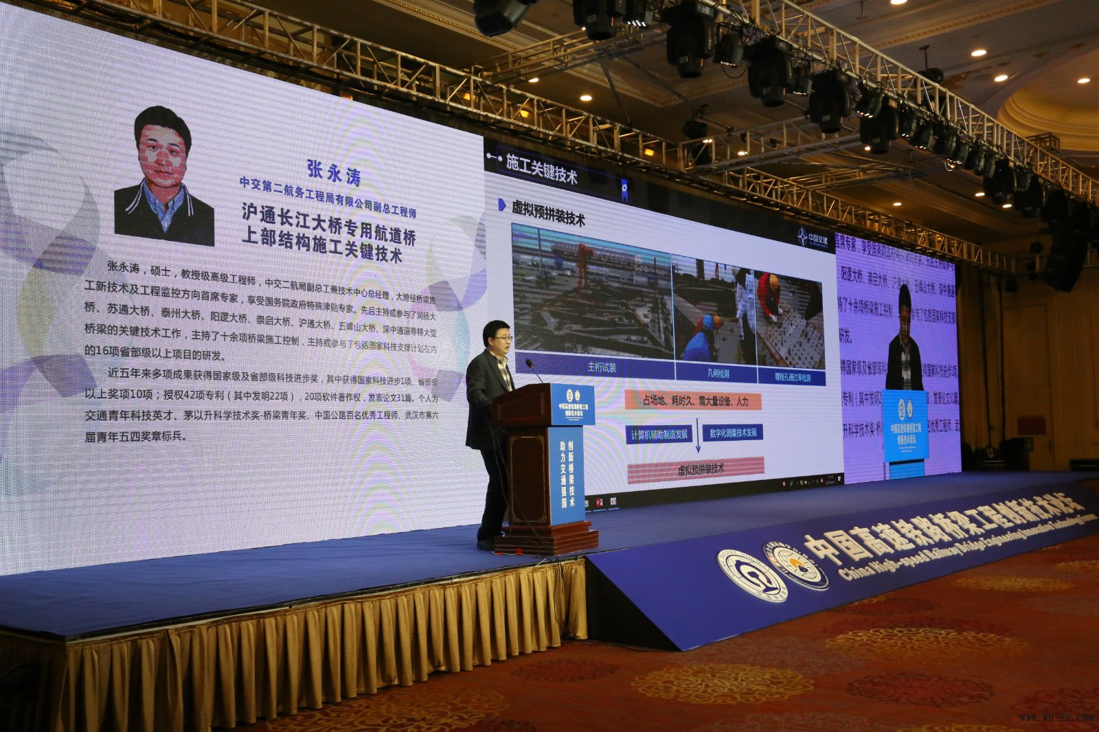 中国交建作为唯一的路外单位承办会议,并在会上做了汇报交流。中国交建技术中心副主任鲍卫刚、二航局总经理张鸿和副总经理杨志刚出席了论坛,二航局副总工程师张永涛发表了主题为“沪通长江大桥专用主航道桥上部结构施工关键技术”的汇报演讲。