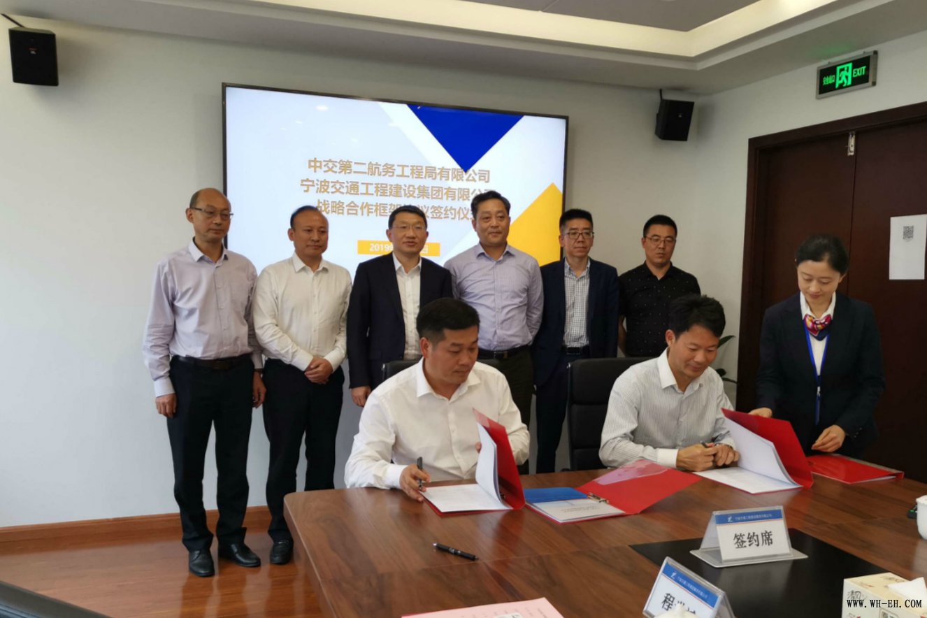 4月25日,二航局总经理张鸿一行到宁波交通工程建设集团有限公司拜访交流。会上,二航局副总经理杨志刚与宁波交通工程建设集团有限公司总经理张旭东,代表双方签署了战略合作框架协议。四公司副总经理、浙江分公司总经理方成武参会。