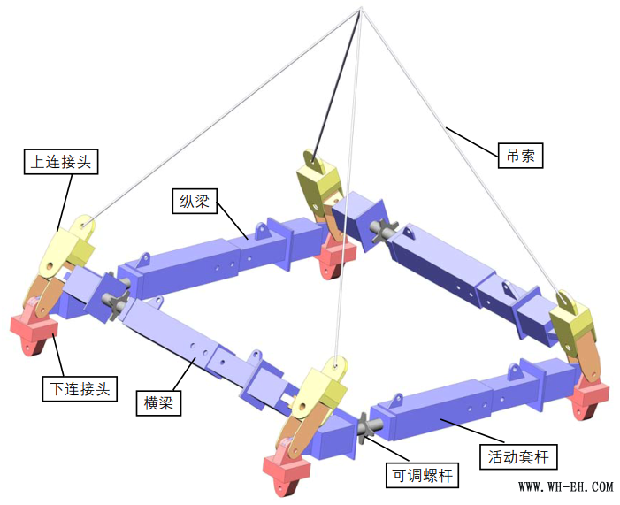 “一种精度可调的压杆式吊具”专利中的压杆式吊具具有结构简洁、受力明确、安装方便、适应性强等四个特点。通过纵、横梁长度可调装置,吊具可以很好适用于尺寸渐变构件的吊装需要。该吊具已在南京五桥主桥钢混组合索塔施工中进行了运用,有效保证了索塔钢壳吊装过程中的结构安全以及变形控制。