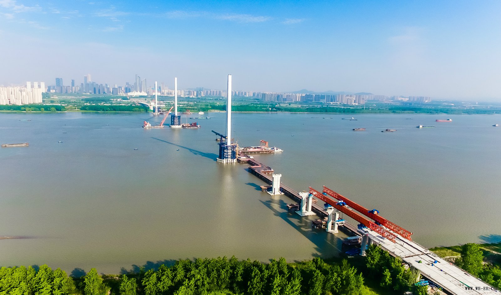 目前,主桥中塔塔区主梁0号块支座垫石浇筑完成,0号块梁段安装施工准备进入尾声,预计五月中旬吊装0号块梁段。同时北引桥、北接线共4台架桥机正在紧张有序地进行节段梁安装施工。