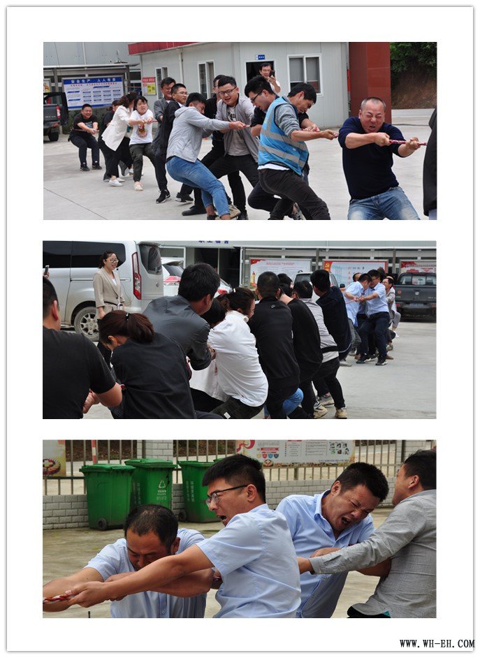 员工已全部集结完毕,在项目部的操场上安静的等待着裁判的口令,欲抓住最佳开拉时机点,抢占优势。每个人看起来都神经紧绷,激动万分,目不转睛的关注着对手一举一动。随着裁判口哨声的停止,已经排列站立的两支队伍的口号声响了起来。“1、2、3······拉······”两支队伍使出浑身解数,因用力过大而满脸涨得通红。双方非常投入,两只队伍渐渐偏离原来站立的平行轨道,站在边上呐喊助威的人边后退边喊加油,为比赛的人腾出足够的空间。两队势均力敌,因黄队偏离轨道太多而渐渐失去平衡,红队抓住有利形势,趁胜追击,说时迟那时快,绳子上的红布条已经成为红队的“囊中之物”。