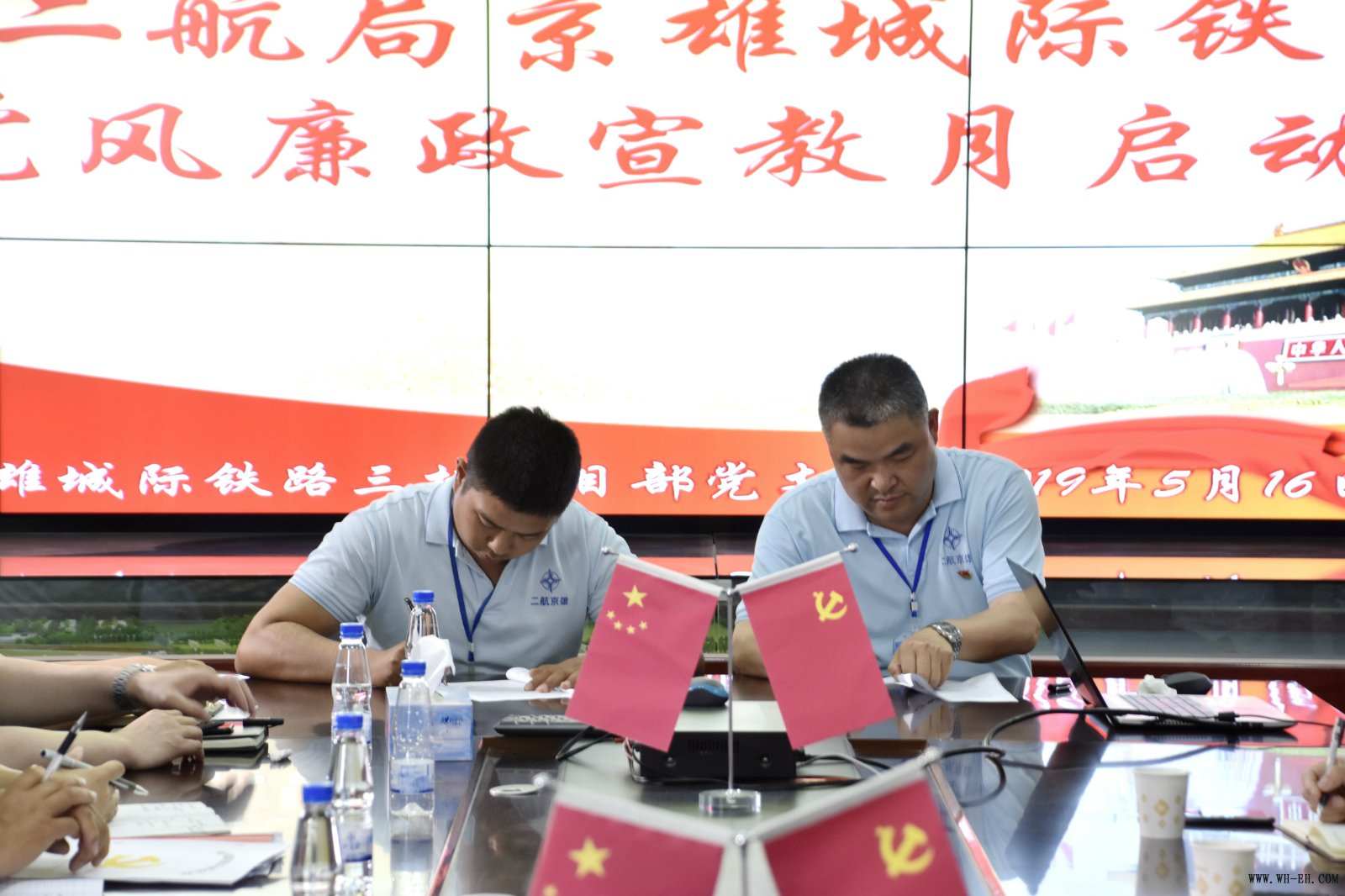 5月16日,京雄项目部召开2019年党风廉政宣教月活动启动会,项目部领导班子,部门副职以上人员,全体党员近40人参加会议。