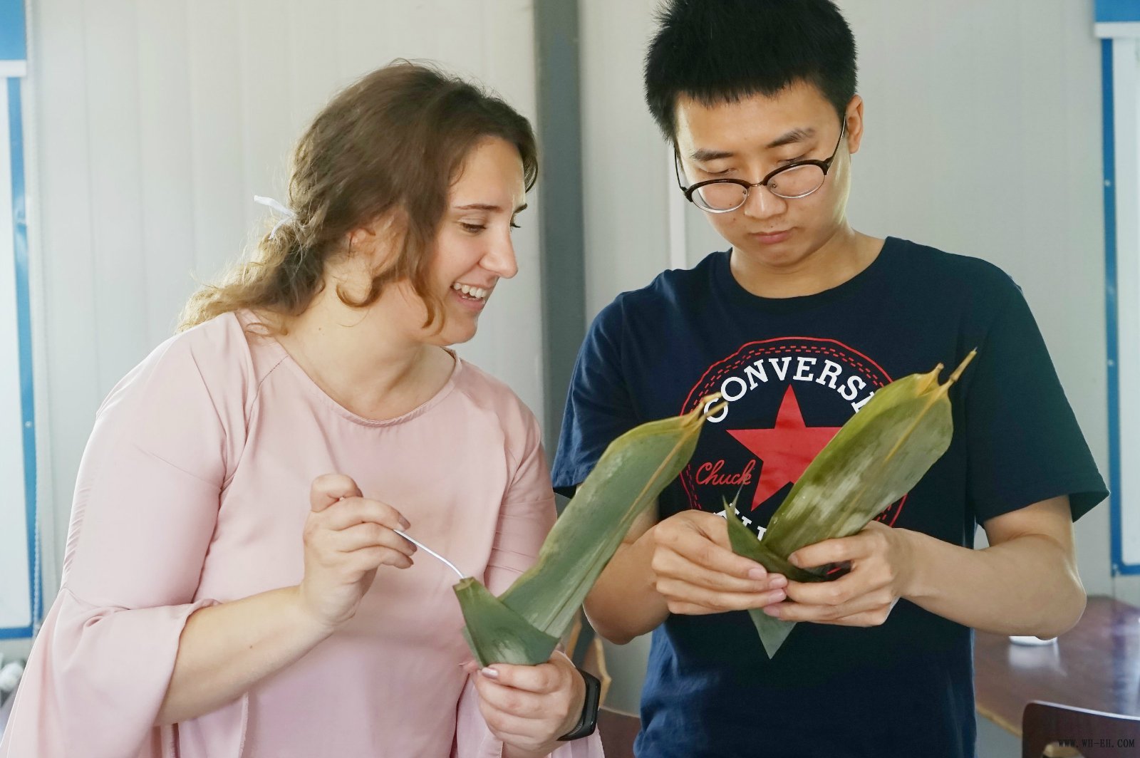 在Angela细心的教学下,冯佳杰很快便包好了一个。“端午节是我们中国人的节日,真没想到,在异国他乡,教会我包粽子的竟然是外国人”冯佳杰感慨道。