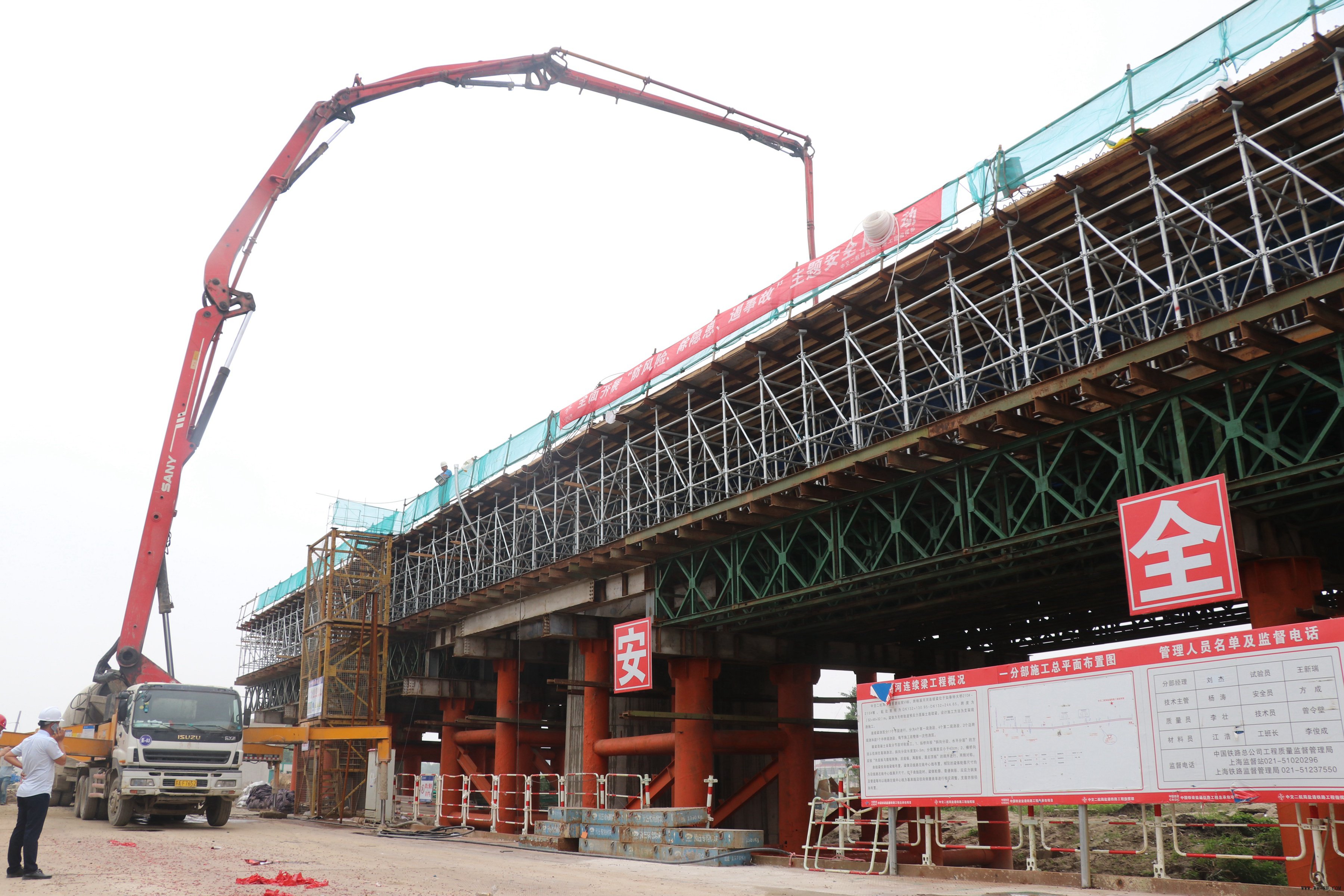 6月11日,盐通铁路6标项目跨杨溪河连续梁浇筑完成,这也是本标段首个完成浇筑的连续梁,为后续其他连续梁的施工提供了数据指导和技术支撑。