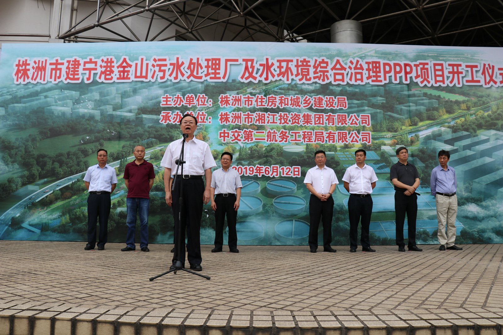 2019年6月12日,中交二航局承建的株洲市建宁港金山污水处理厂及水环境综合治理PPP项目正式开工。开工地点选在建宁港黑臭水治理项目的起始段——龙泉污水处理厂,二航局党委书记、董事长由瑞凯,副总经理杨志刚参会并代表中交二航局讲话。