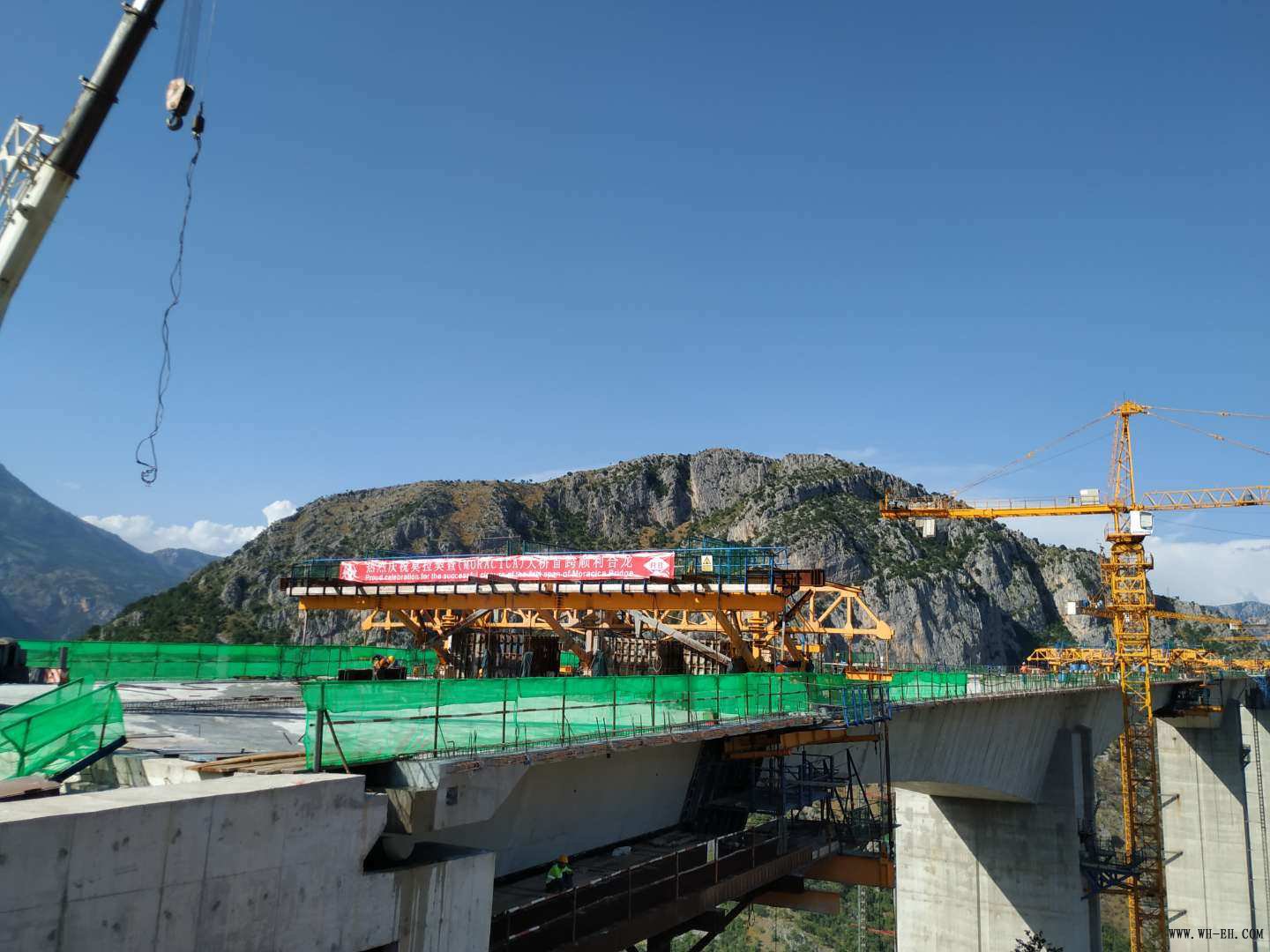 由中交二航局四公司承建的黑山南北高速项目一标段莫拉契查特大桥,全桥长960米,最高墩身为168米,基础为30×26m扩大基础。该桥为大跨径、高墩身、宽箱梁桥,首跨成功合龙也标志着莫拉契查特大桥又一节点控制性工程取得突破性进展。