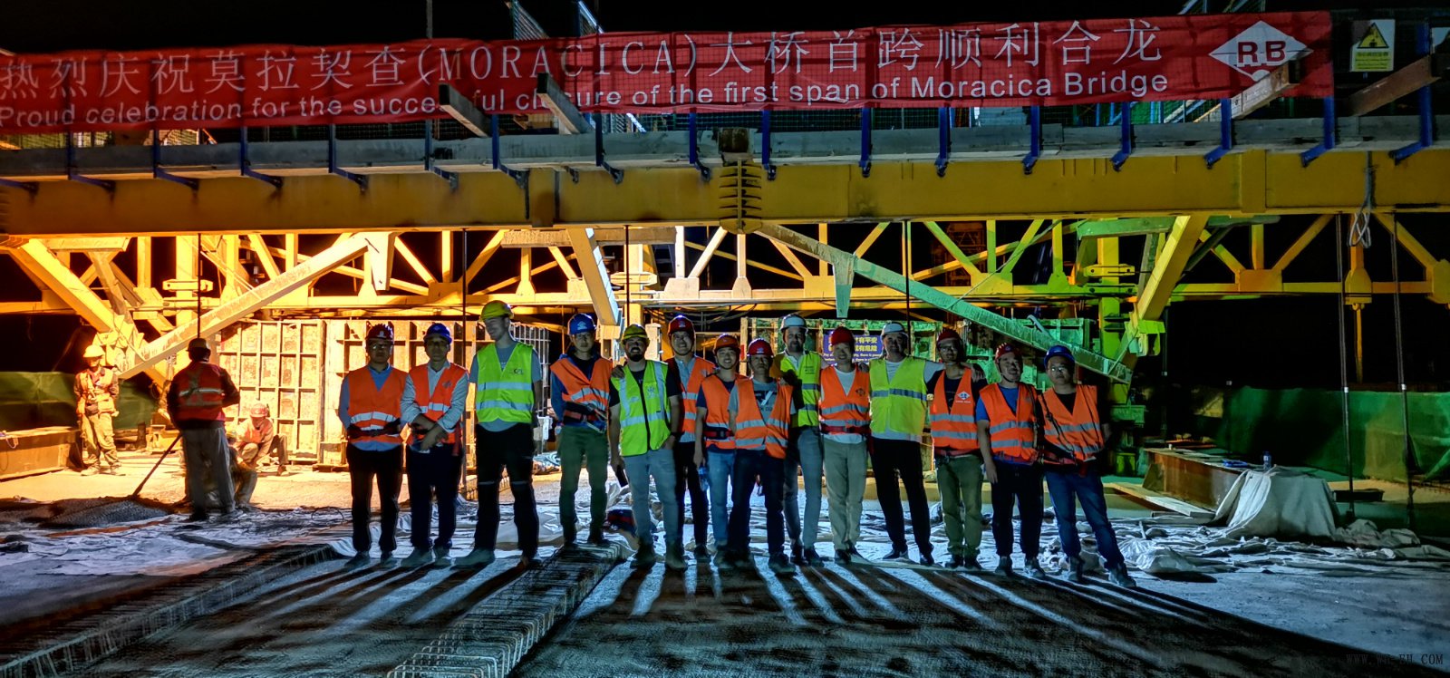 2019年7月7日凌晨三点,莫拉契查大桥最后一方混凝土成功入模,标志着中交二航局四公司黑山南北高速项目一标段莫拉契查特大桥边跨首次成功合龙,为后续边跨、中跨、次边跨合龙奠定了基础。