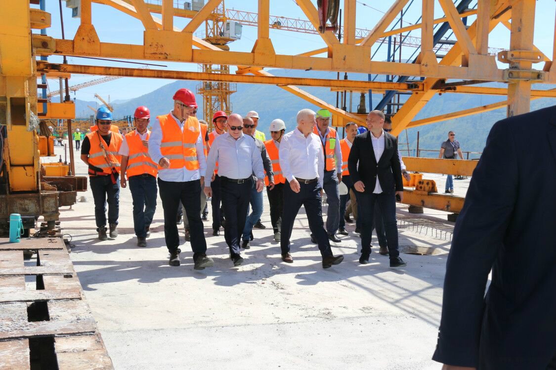 7月18日,黑山共和国总理杜什科•马尔科维奇(Duško Marković)在交通部长奥斯曼•努尔科维奇(Osman Nurković)及多位黑山政府部委负责人陪同下视察了中国交建承建的黑山南北高速公路项目莫拉契察(Moračica)特大桥施工现场。