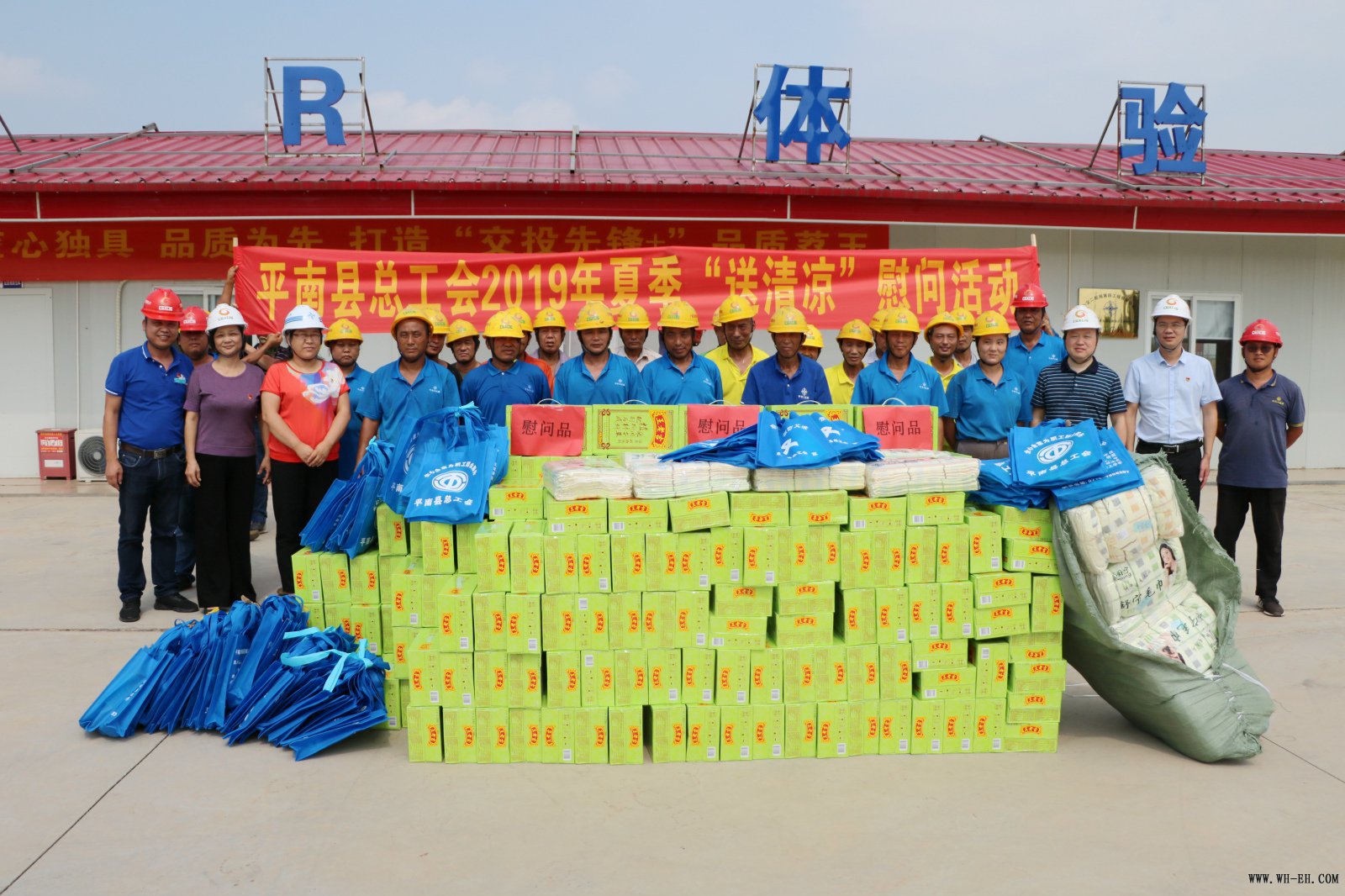 7月19日,平南县总工会副主席彭凤莲、党委书记彭永德、副主席谢红玲一行,赴荔玉高速项目相思洲大桥开展夏季“送清凉”活动,慰问奋战在一线的建设者,广西荔玉高速公路有限公司党委副书记胡建光参加活动。