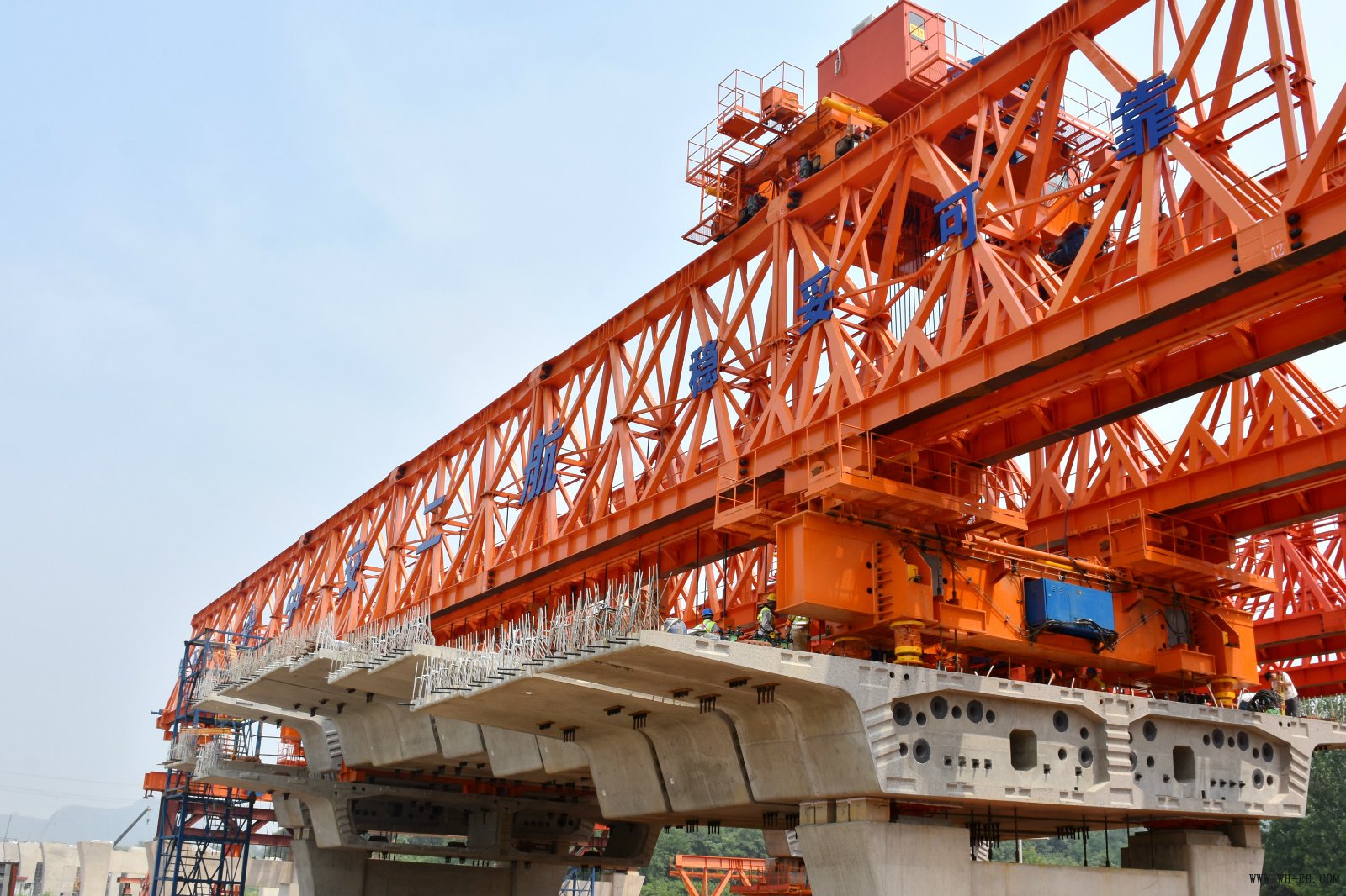 据了解,项目4标段长约5061米,分南北引桥两个部分,为全线控制性工程。上部结构主要采用节段梁预制安装施工工艺,共有节段梁3095榀,安装工期仅15个月,高峰期将有7台架桥机同时进行节段梁架设。