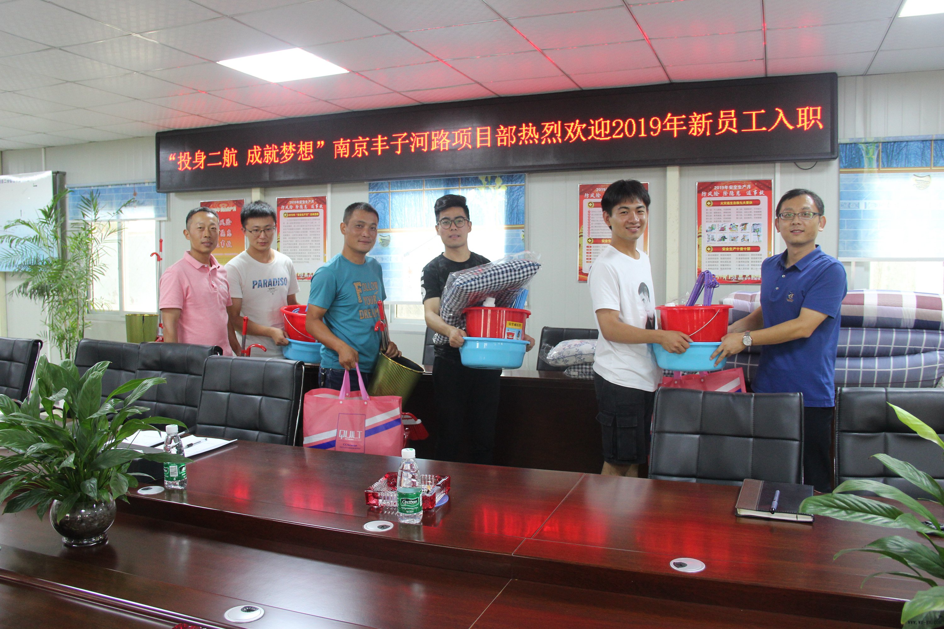新员工由项目部车辆接到目的地后,直接到达宿舍,享受床铺整齐、一切生活用品配备齐全、“拎包入住”的住宿条件。下午,相关负责人在会议室召开2019年新职工入职安全教育培训会,促进新员工提高安全意识,今后在现场能够学以致用,并能将今日所学时时记刻在心中,提高警戒,保护自己及他人。当晚,项目经理带领领导班子成员为新员工举办了一场欢迎宴,欢迎他们加入到项目部这个大家庭中,并勉励他们今后要善于思考、勤于学习、不怕艰难、刻苦钻研,在自己的工作岗位上发光发热。新员工都纷纷点头,认真听取领导们的谆谆教诲。