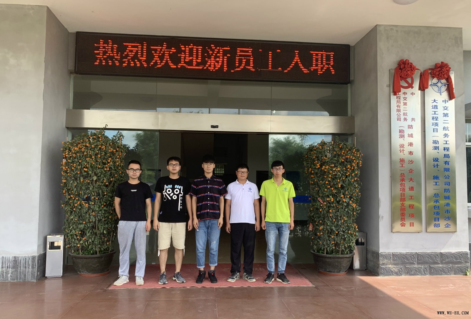 7月19日,公司新招职工陆续到达各项目部,防城港沙企大道项目也终于在期待中迎来了五位新员工。