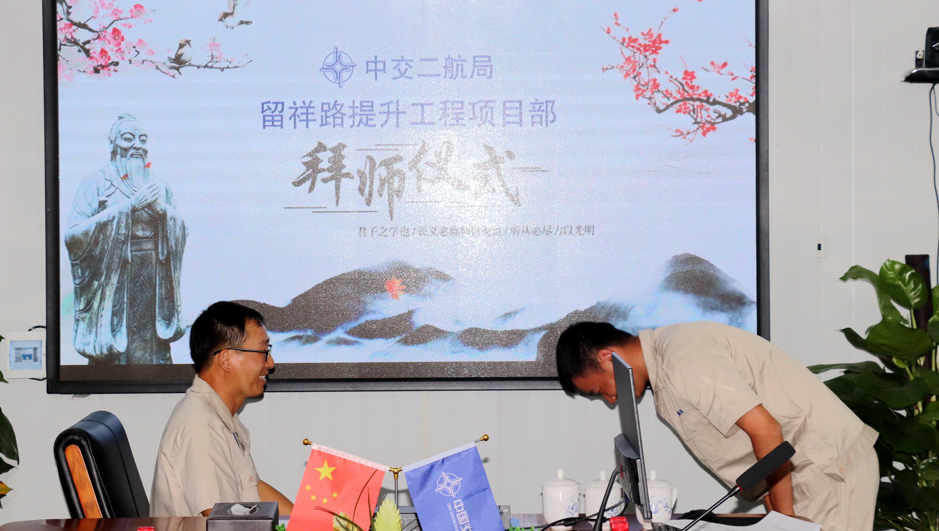 7月29日,留祥路提升工程项目部在会议室组织举办了一场简单而不失庄重的“导师带徒”拜师仪式,仪式由项目书记主持。