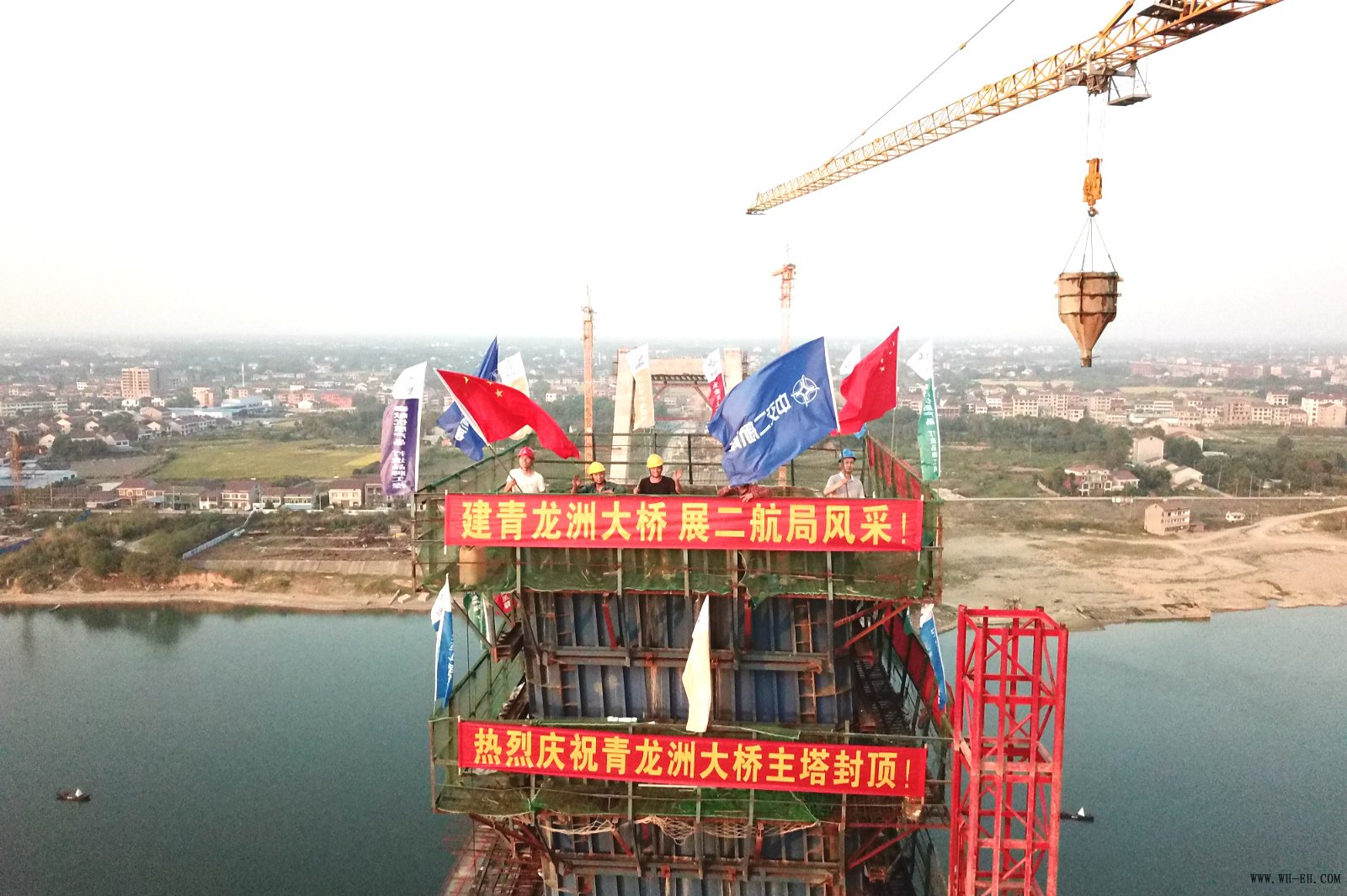 据大桥现场主任工程师王欢介绍,青龙洲大桥为自锚式悬索桥,全长1636米,双向6车道,设计时速80公里。26日封顶的青龙洲大桥南主塔高88米,相当于30层楼房高,混凝土总方量 8278立方米。在施工过程中,为了让主塔安全快速的“茁壮成长”,大桥建设者们按照益阳市委市政府的统一部署,坚持“高起点规划、高标准建设、高品质管理”的要求,科学组织,精心安排,24小时不间断施工。成功克服了上半年连续降雨、连日高温、高空作业及工作空间狭小等施工难点,确保了大桥主塔按期顺利封顶。
