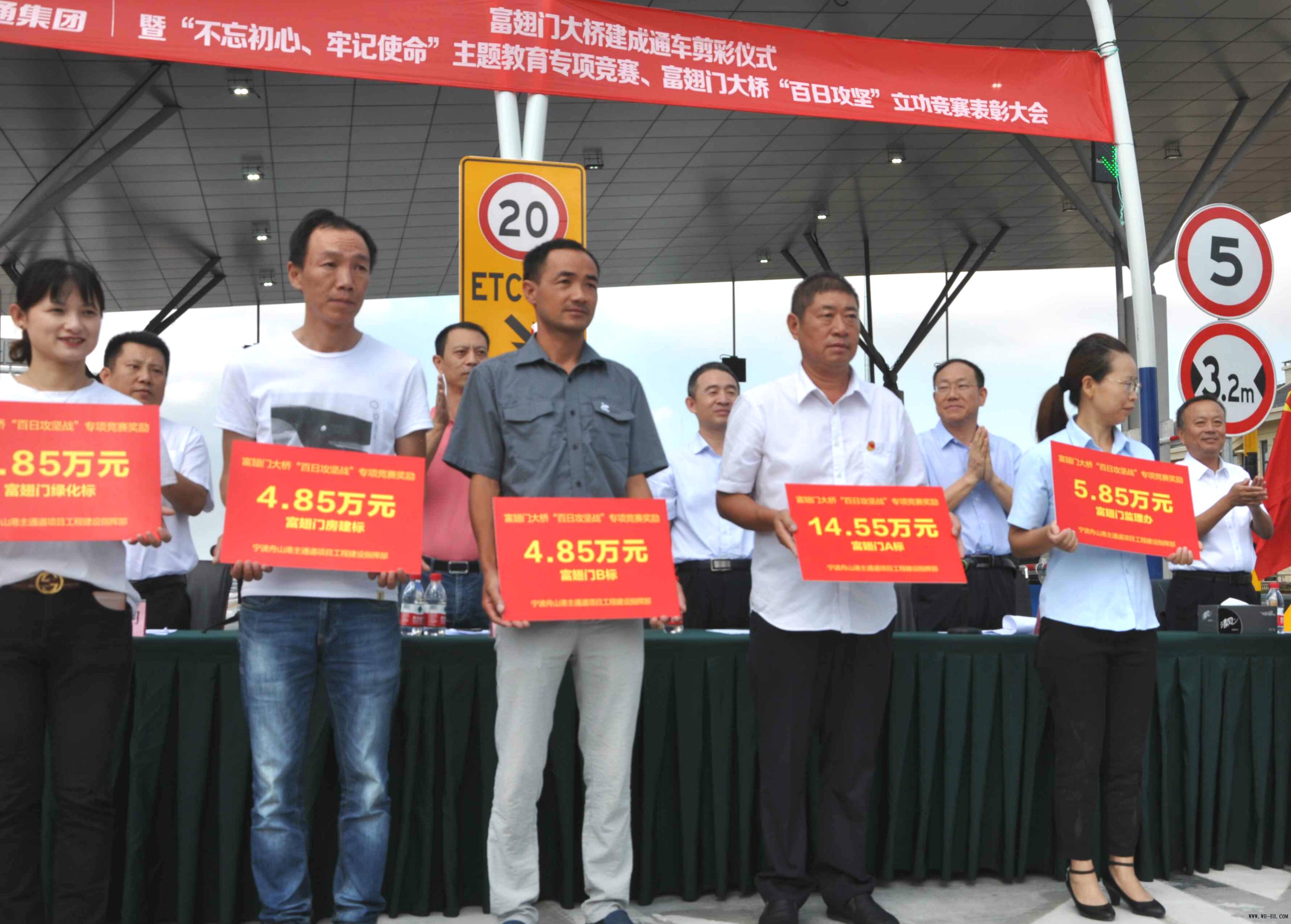 9月27日,舟山市富翅门大桥“百日攻坚”立功竞赛表彰大会在舟山西收费站外广场隆重举行。在本次表彰大会上,我项目部获得奖励金额14.55万元,在参与富翅门大桥工程建设的9个标段中位列第一名。