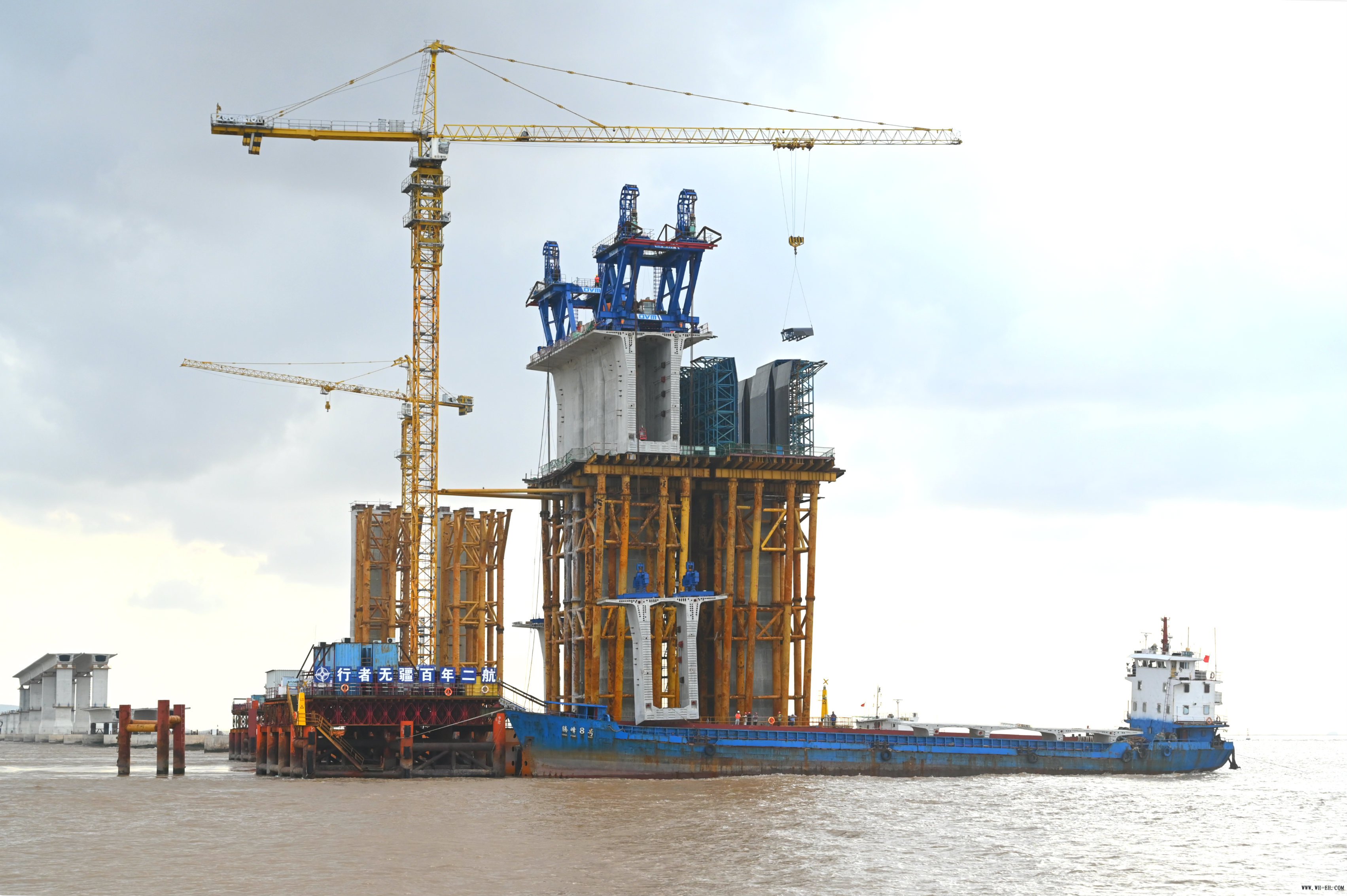10月14日,由中交二航局承建的舟岱大桥北通航孔桥3号块完成吊装。3号块是北通航孔桥首次使用桥面吊机吊装的节段梁,同时也是桥面吊机吊装的最大预制节段梁,节段梁长3米,高12.15米,重达250.3吨。本次节段梁的顺利吊装标志着舟岱大桥北通航孔桥上部结构施工进入快车道。