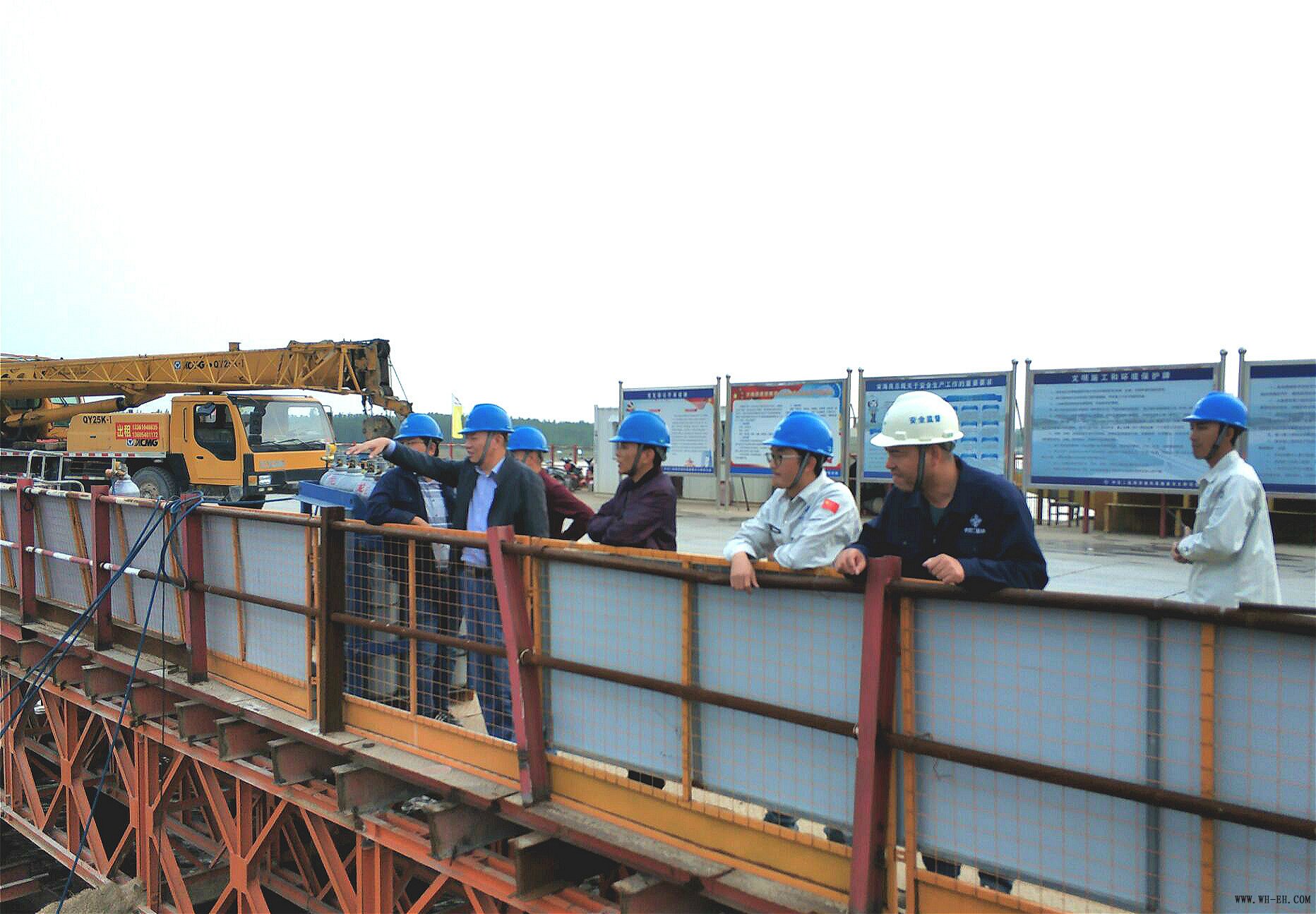 王德怀深入施工现场,针对提梁站及顶推支墩施工、南北岸钢结构施工、承台及塔座施工以及需要解决协调的问题,给出了具体的指导意见。