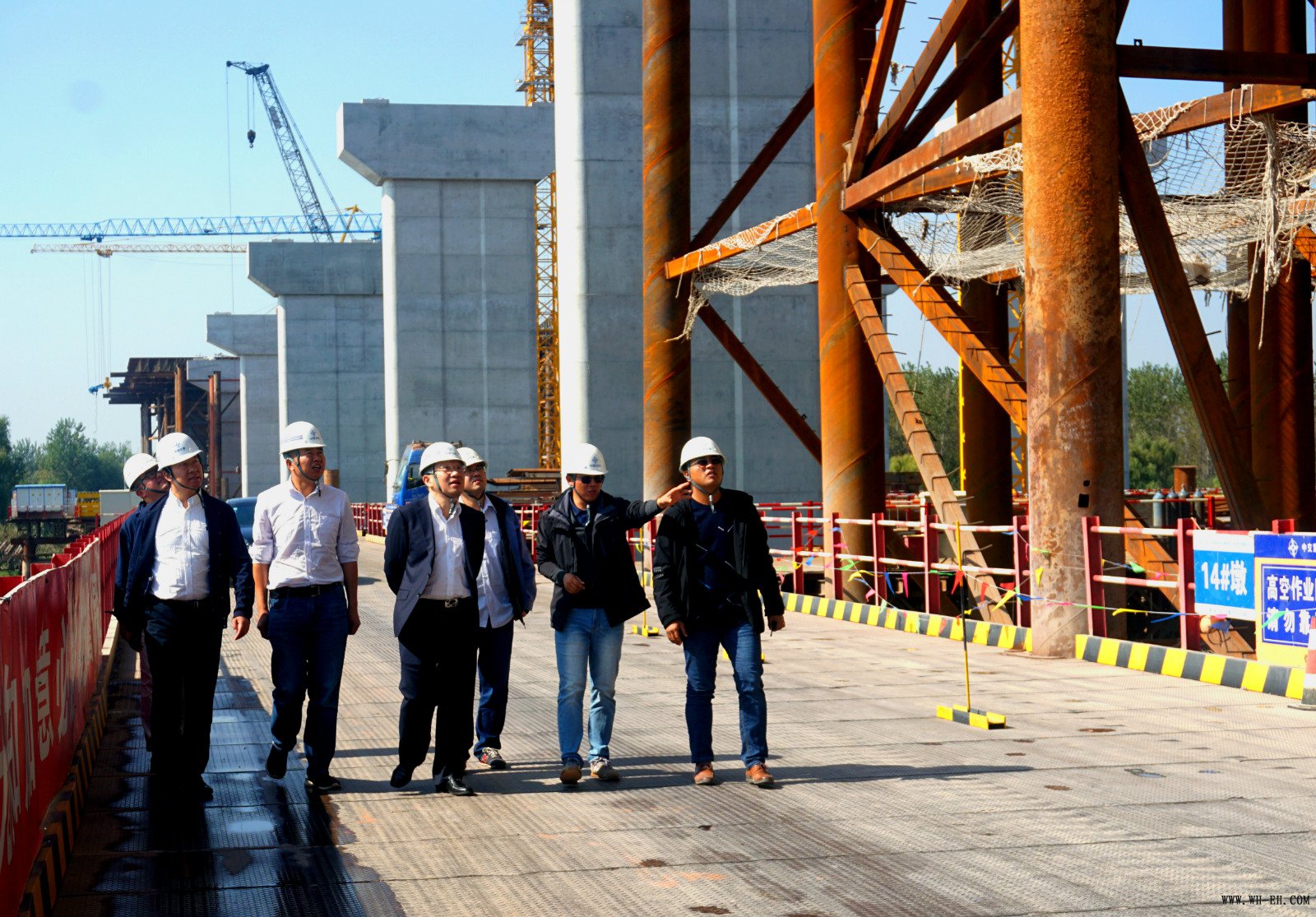 为确保安全生产工作有效落实,保障安全生产工作万无一失, 10月23日上午,二航局党委副书记、总经理张鸿,办公室副主任杨白斌,来到公司南京片区的南京五桥、浦仪大桥项目部,现场检查安全生产工作的开展情况。公司副总经理、南京分公司经理种爱秀,以及项目部领导陪同巡查。