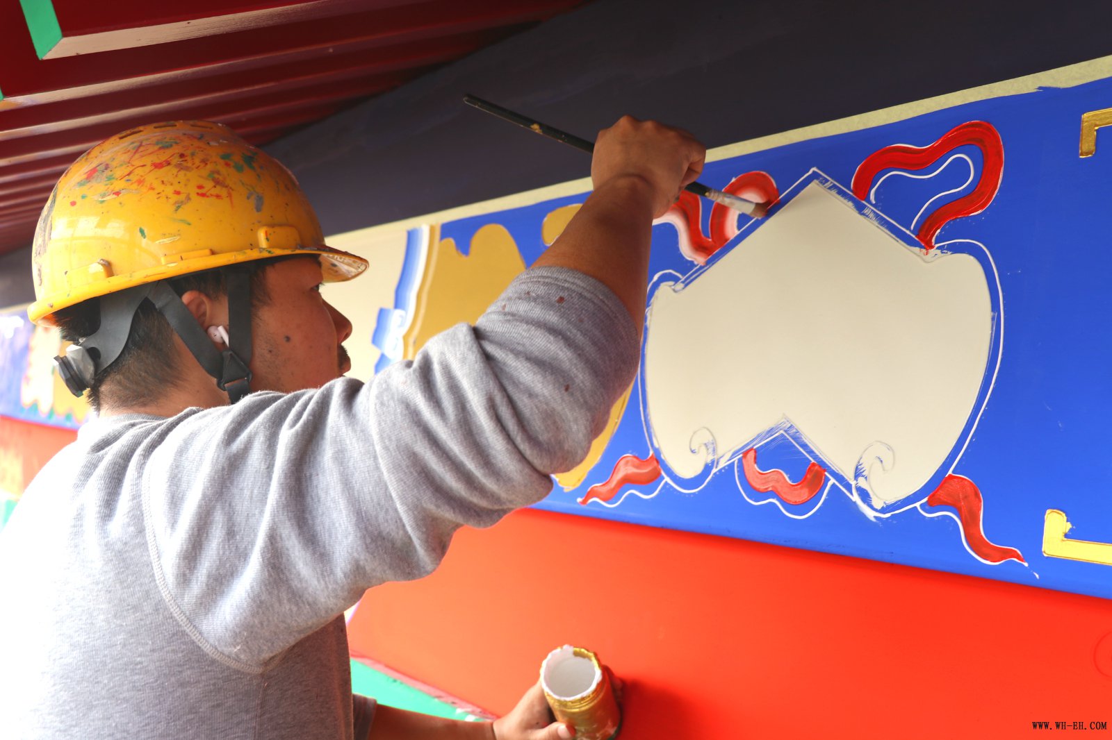据项师傅介绍,我国的古建筑油漆彩绘工艺是中华文明的精彩组成部分,经过上千年的发展,最终形成了一整套具有中国特色的装饰工艺。这种特殊的古老工艺由底层处理和表面油漆彩绘两部分组成,它可以保护木建筑免受日晒、风吹、雨淋,耐腐蚀、抗紫外线,对古建筑起到了很好的保护作用;而且彩绘效果好,不容易褪色,又起到了很好的装饰效果。