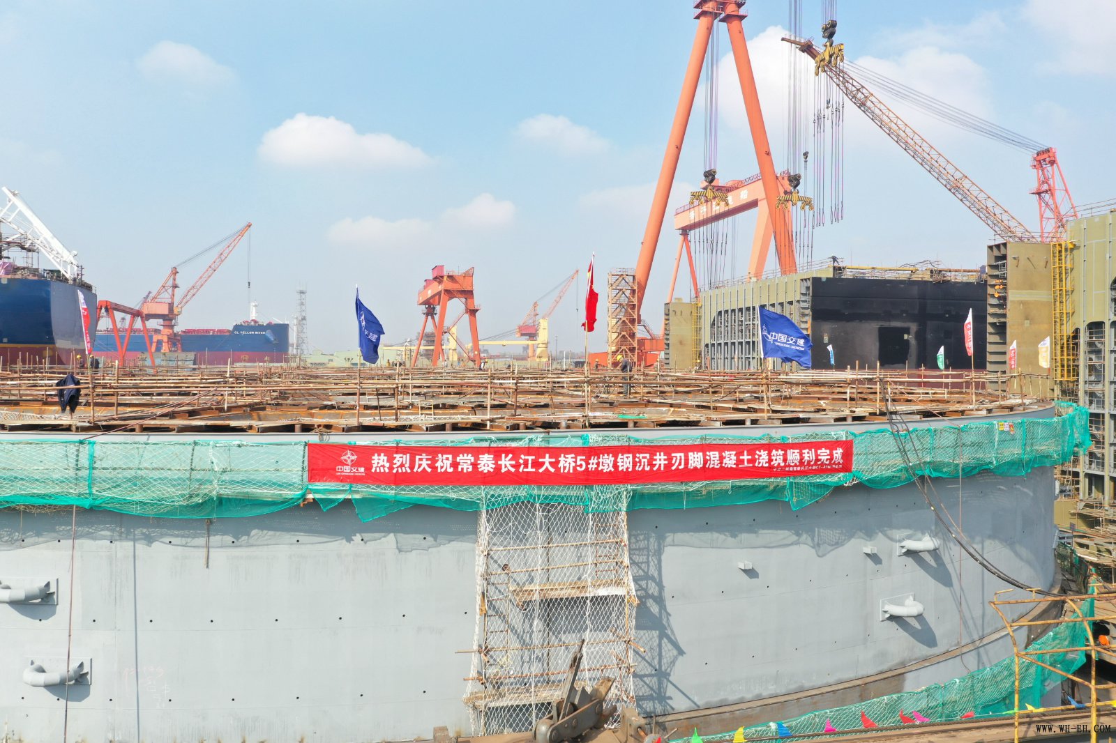 自今年1月份临时工程开工以来,大桥已全面完成栈桥、码头等大临设施建设,正在全面展开钢沉井制造工作,年内将实现大桥主塔钢沉井“精准定位、可控下沉”着床目标,为2020年沉井完成最终下沉到位打下坚实基础。