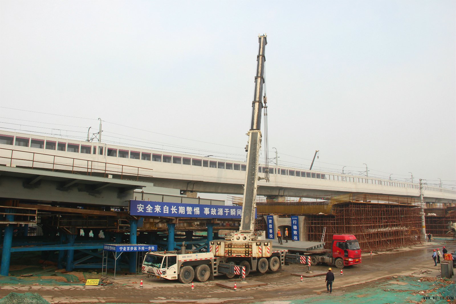 石碛河大桥现场负责人吴晨飞介绍,钢箱梁运输很特殊。就拿本次吊装完成的最后一跨钢箱梁为例,长度17.5米、宽24.75米、高2米,重达183.3吨,为了将其稳妥安全地运输到现场,项目部调来3辆重型低平板车,并安排了两辆大件引导车进行押运、护送;为了不影响市民正常出行,项目部认真分析吊装各步骤控制要点,优化施工方案,积极与交通部门沟通,规划晚间运输路线,保障了钢箱梁的顺利运输。