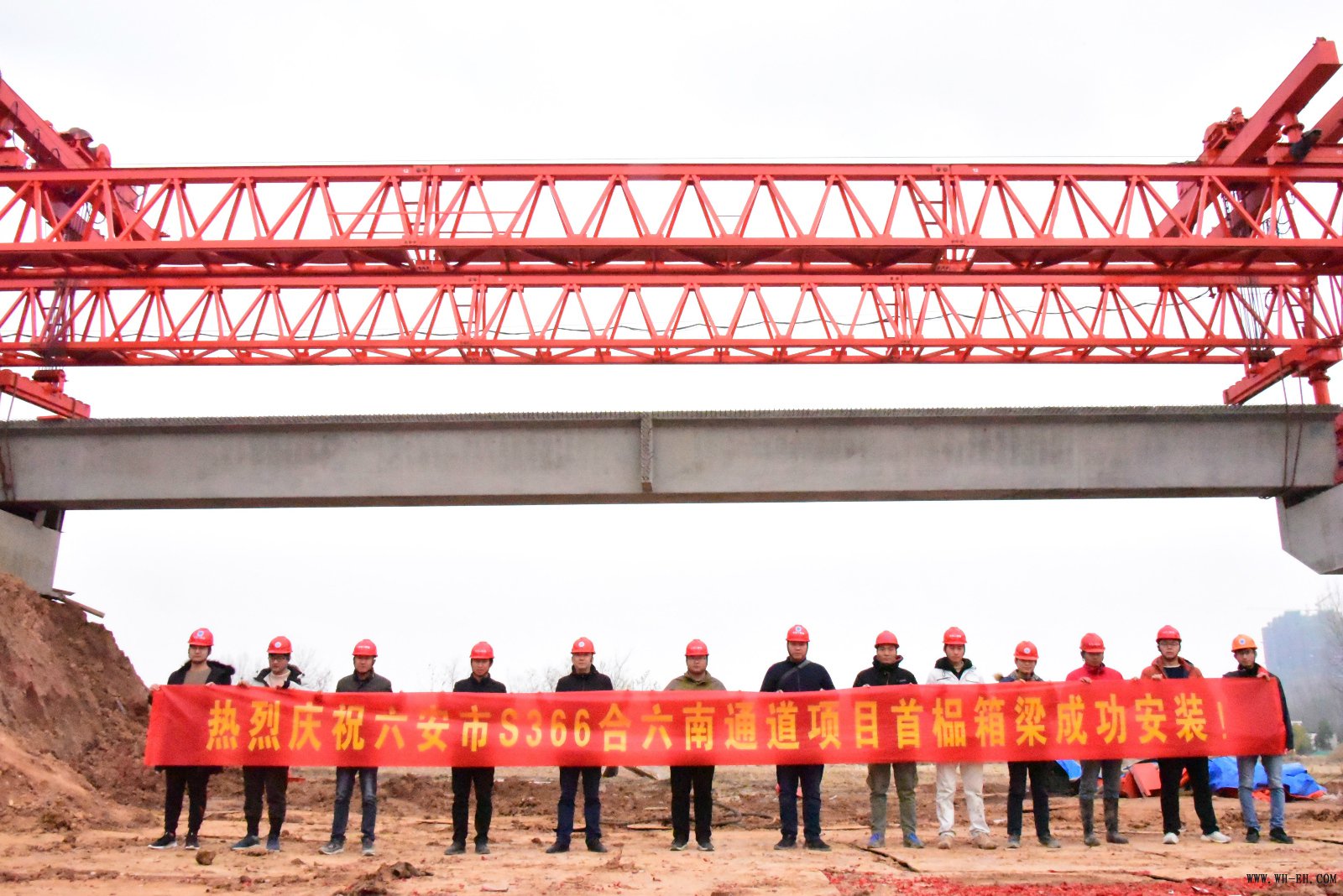 12月5日17时,随着橘红色架桥机钢丝绳的缓慢下落,长达30米、重95吨的砼箱梁平稳准确地落到了淠河总干渠大桥的13-5#墩支座上,六安市S366合六南通道项目首榀箱梁顺利架设完成,标志着该项目完成了又一新工序的转换,开启桥梁上部结构施工的序幕。