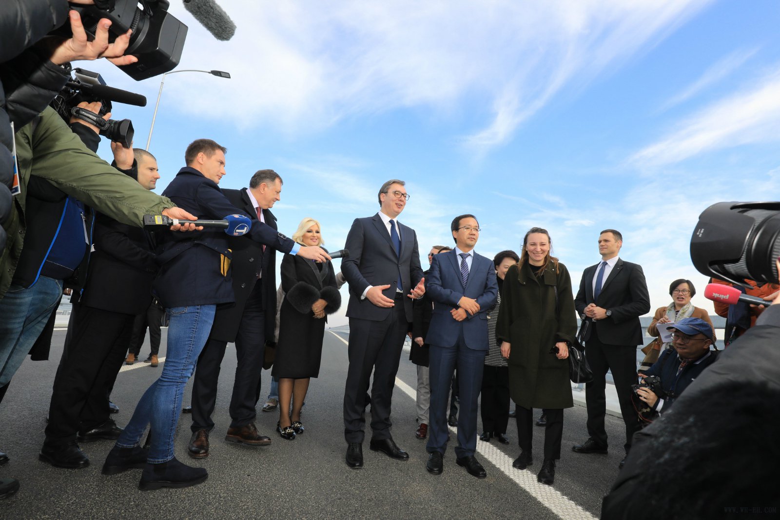 当地时间2019年12月18日,塞尔维亚总统亚历山大•武契奇、波黑塞族共和国总统米洛拉德•多迪克、中国驻塞尔维亚大使陈波共同在项目现场见证塞尔维亚E763高速公路苏尔津至奥布雷诺瓦茨段通车!