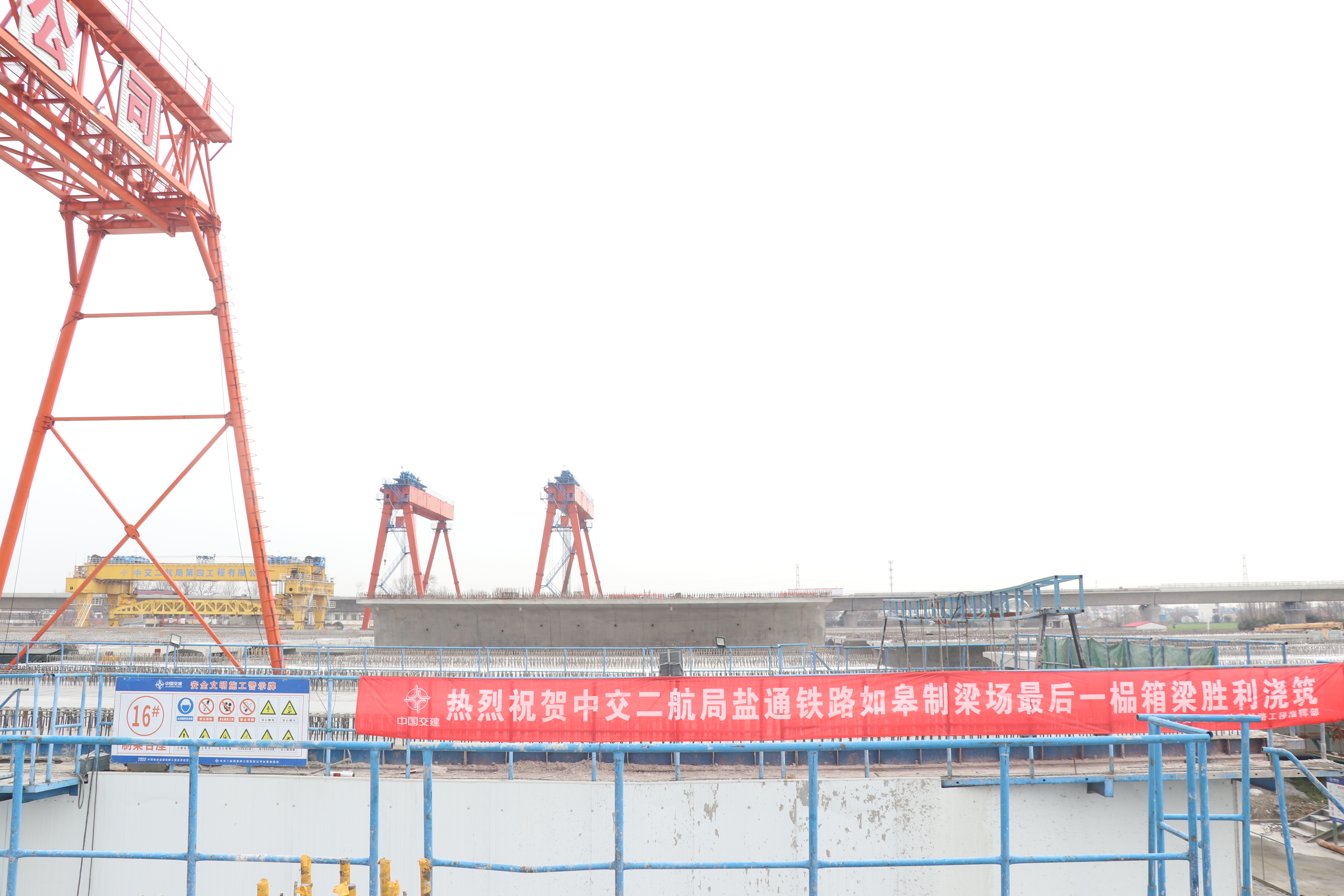 12月31日,在泵车的轰鸣声中,由中交二航局承建的新建盐通铁路站前6标最后一榀箱梁顺利完成浇筑,标志着如皋制梁场圆满完成了全部716榀箱梁预制的任务,为2020年的到来献上了一份大礼。