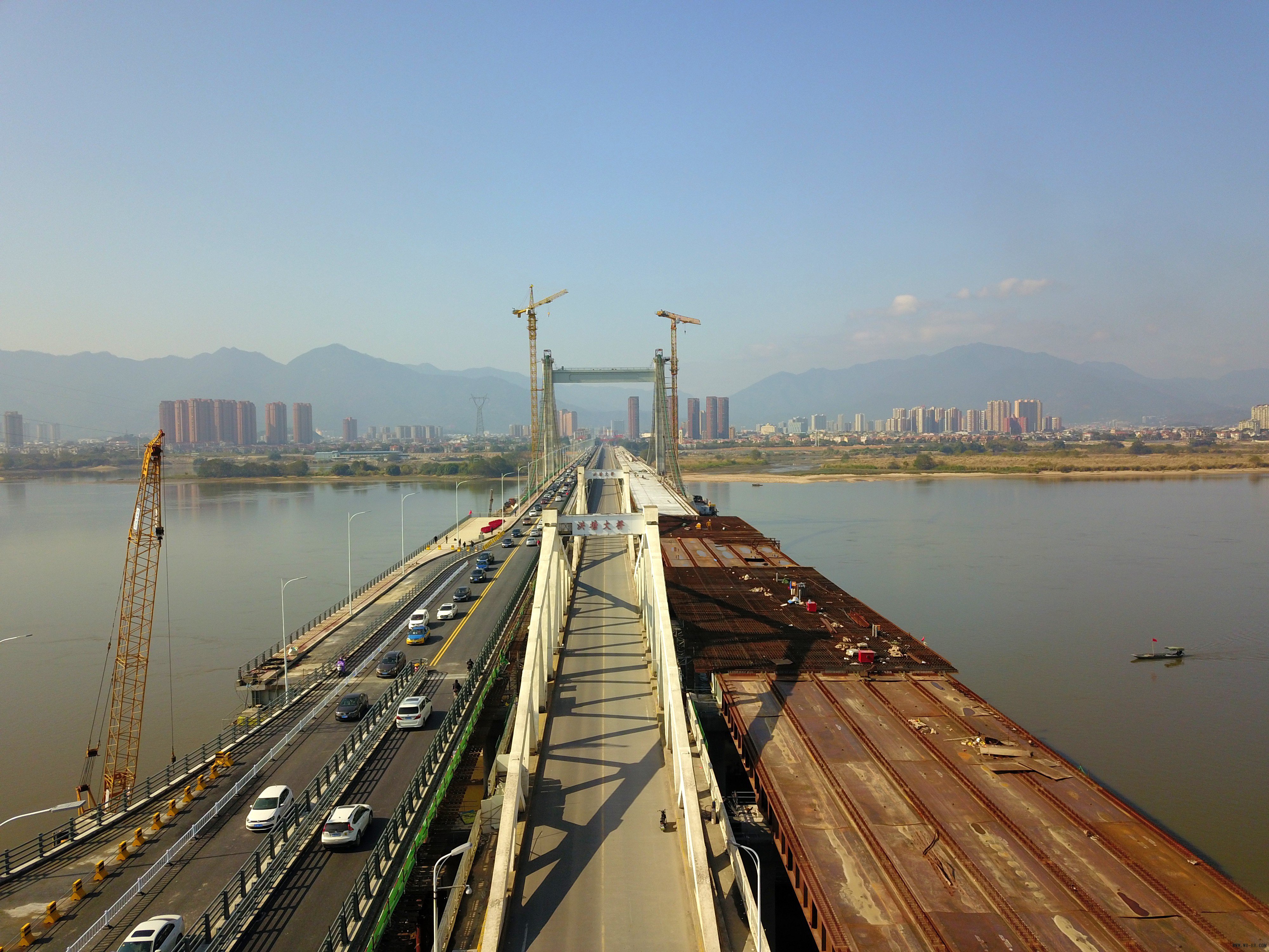 现有洪塘大桥是福州市西向通行主干道,为保障福州市民的便捷出行,在建设过程中对老百姓的影响降到最低,按照福州市委、市政府的要求,我司多次组织专家研究论证,最终确定对新洪塘大桥采用“分三幅施工一次串联”的保畅通的施工方案,这在全国属于首创。