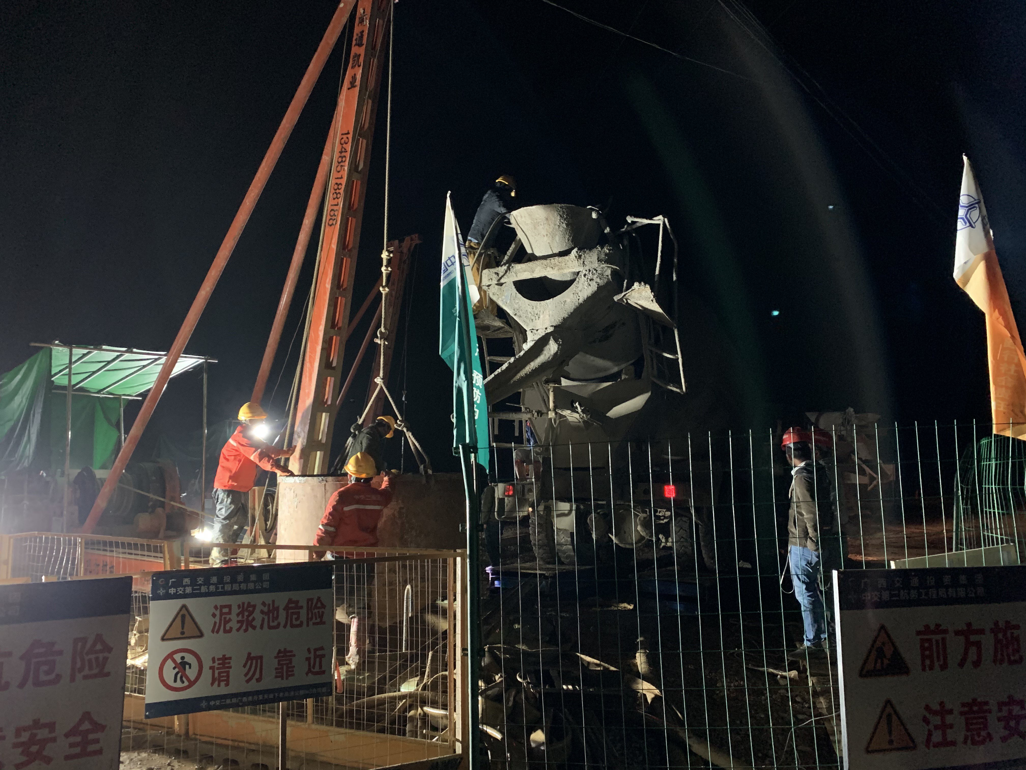 1月1日上午7点,历经长达七个半小时的艰苦奋战,由公司承建的南丹至天峨下老高速公路№3合同段坡结互通A匝道4-1#桩基顺利浇筑完成。