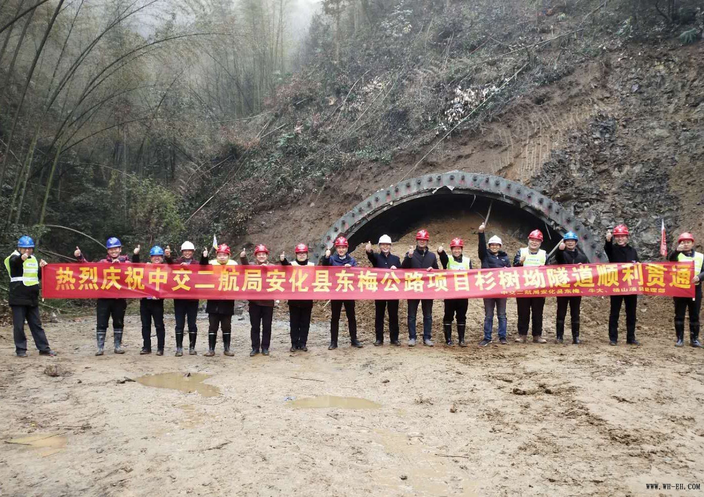 1月2日,历时17个月的施工,由中交第二航务工程局承建的S324东坪至梅城公路工程杉树坳隧道,在业主、监理、县委书记以及地方各级政府代表见证下,顺利贯通,为全线5座隧道中第一座贯通的隧道。它的贯通为东梅公路工程如期完工奠定了坚实的基础。